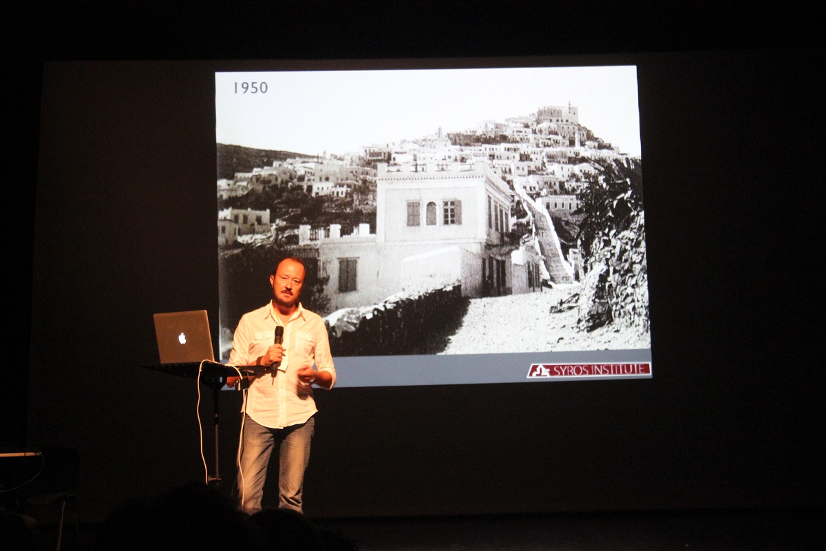 Την εκδήλωση χαιρέτισε ο πρόεδρος του Ινστιτούτου Σύρου, Ιωσήφ Στεφάνου, Ομότιμος Καθηγητής ΕΜΠ. Όπως τόνισε, στόχος του Ινστιτούτου είναι να προάγει τη διακίνηση νέων ιδεών, να συμβάλει στην εκπαίδευση και την επιμόρφωση πάνω στα θέματα του πολιτισμού και της παράδοσης, να βοηθά και να ενισχύει την έρευνα, να ενημερώνει τους κατοίκους, αλλά και να συνεργάζεται με ελληνικούς και διεθνείς φορείς για την πολιτιστική ανάπτυξη της Σύρου.