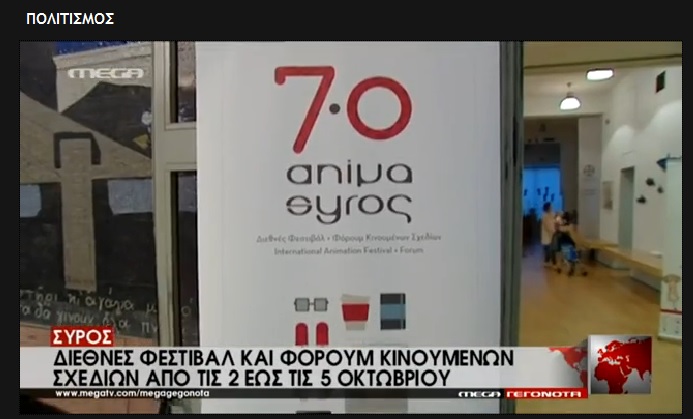 Στον μαγικό κόσμο των κινουμένων σχεδίων και συγκεκριμένα στο γνωστό Φεστιβάλ animasyros 7.0 που ξεκινά στη Σύρο από τις 2 Οκτωβρίου και αναμένεται να διαρκέσει έως και τις 5 του ίδιου μήνα αναφέρθηκε με σχετικό αφιέρωμα ο τηλεοπτικός σταθμός του MEGA στο δελτίο ειδήσεων.