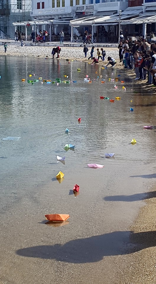 Χάρτινα καραβάκια με ευχές και ποιήματα στην “πλώρη” τους, σεργιάνισαν την περασμένη Κυριακή στο Γιαλό Μυκόνου, με αφορμή την Παγκόσμια Ημέρα Ποίησης, του αρχαιότερου λογοτεχνικού είδους. Η εκδήλωση με θέμα “Ένα ταξίδι, ένα καράβι, ένα ποίημα” διοργανώθηκε από την Κοινωφελή Δημοτική Επιχείρηση Μυκόνου στο πλαίσιο των εκδηλώσεων “Η ψυχή και το συναίσθημα γιορτάζουν την άνοιξη στη Μύκονο”.