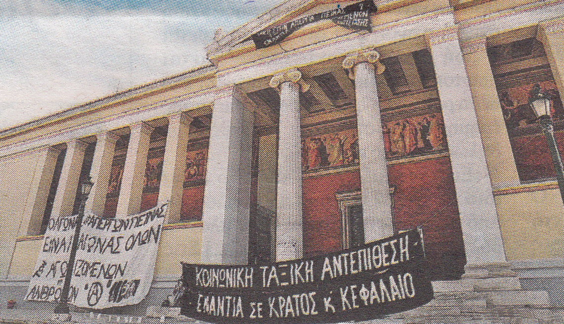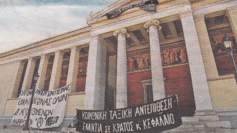 Αυτό το σύνθημα ήταν γραμμένο πάνω στο μαύρο πανώ που είχε τοποθετηθεί στα προπύλαια του υπέροχου νεοκλασικού κτιρίου του Πανεπιστημίου Αθηνών. Ήταν, λέει, μια κατάληψη από αντιεξουσιαστές. Χωρίς καμία διάθεση να διαφωνήσω ή να συμφωνήσω με τα δρώμενα των αντιεξουσιαστών, αλλά ως μια απλή Ελληνίδα, ρώτησα αρκετούς ανθρώπους αν μπορούν να μου εξηγήσουν: Γιατί έγινε αυτή η κατάληψη; Ποιοί έκαναν αυτή την κατάληψη; Ήταν φοιτητές; Και τι ζητούσαν; Ποιες ήταν οι προτάσεις τους και τι ζητούσαν να αλλάξει; Σκέφτηκα ότι αν όλες αυτές οι διαδικασίες και οι καταλήψεις έχουν σκοπό να προτείνουν καλλίτερα προγράμματα ή προτάσεις για μια καλλίτερη παιδεία ώστε να βελτιωθεί το μορφωτικό επίπεδο των μαθητών των Λυκείων και των σπουδαστών των Πανεπιστημίων, αυτό θα ήταν το καλλίτερο. Η εκπαίδευση των παιδιών, η μόρφωση και η γνώση, είναι αυτό που θέλει και επιθυμεί η ελληνική οικογένεια. Τελικά, παρά τις ερωτήσεις που έκανα σε καθηγητές, αλλά και σε φοιτητές, γιατί έγινε όλη αυτή η ιστορία, απάντηση δεν πήρα. Ένας καθηγητής όμως μου είπε ότι επειδή παλαιότερα είχε αποφασιστεί να καταργηθεί το Πανεπιστημιακό άσυλο, με όλες αυτές τις διαδικασίες, το άσυλο επιστρέφει. Βέβαια ποτέ δεν έμαθα ποια είναι η ωφέλεια του ασύλου. Το επόμενο είναι η κατάργηση των Συμβουλίων των ιδρυμάτων. Μα, απ’ ότι γνώριζα, σ’ αυτά τα Συμβούλια μετείχαν αρκετοί Έλληνες Πανεπιστημιακοί από σπουδαία Πανεπιστήμια του εξωτερικού, όπως Κέιμπριτζ, Πρίνστον, Βοστώνη, Paris VII, Γέιλ, Χάρβαρντ κ.α. Στόχος και σκοπός ήταν να παρουσιάσουν αυτοί οι σπουδαίοι επιστήμονες την γνώση και την παγκόσμια εμπειρία τους στα γράμματα, στις τέχνες, στην οικονομική, την πολιτιστική ζωή σε εθνικό και διεθνές επίπεδο, με γνώση και υπεύθυνη εμπειρία. Αυτό, λέει, δεν άρεσε στις περισσότερες φοιτητικές νεολαίες γιατί ήθελαν να περνάνε οι δικές τους θέσεις και προτάσεις. Σιγά τώρα που θα άκουγαν και θα υιοθετούσαν τις γνώμες των άλλων. Δεν περνάνε αυτά σ’ εμάς.