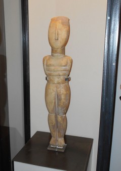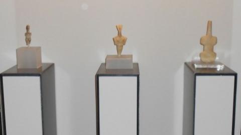 Μεταξύ αυτών, ένα βιολόσχημο, ένα ειδώλιο τύπου Πλαστηρά, ένα τύπου Χαλανδριανής και ένα μεγάλου μεγέθους ειδώλιο τύπου Σπεδού, το οποίο μάλιστα πρωτοστατεί στις αφίσες, στα banners, σε όλο το ενημερωτικό υλικό, αλλά και στο εξώφυλλο του καταλόγου. Τόσο οι Ιταλοί, όσο και οι τουρίστες θα αντικρίζουν το ελληνικό ειδώλιο καθ' όλη τη διάρκεια του καλοκαιριού, καθώς η έκθεση “TerrAntica; Volti, miti e immagini della terra nel mondo antico”, τυγχάνει ευρείας προβολής.