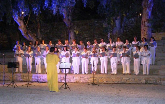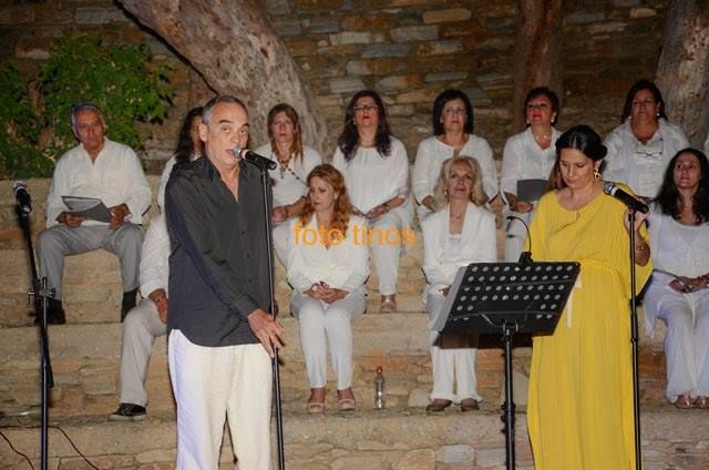 Η εκδήλωση πραγματοποιήθηκε το βράδυ της Κυριακής , στην αυλή του 1ου Δημοτικού Σχολείου Τήνου, στο πλαίσιο του Φεστιβάλ Τήνου με τη συμμετοχή χορωδιών του Συλλόγου Γυναικών Τήνου και της Χορωδίας Πνευματικού Κέντρου Πανόρμου
