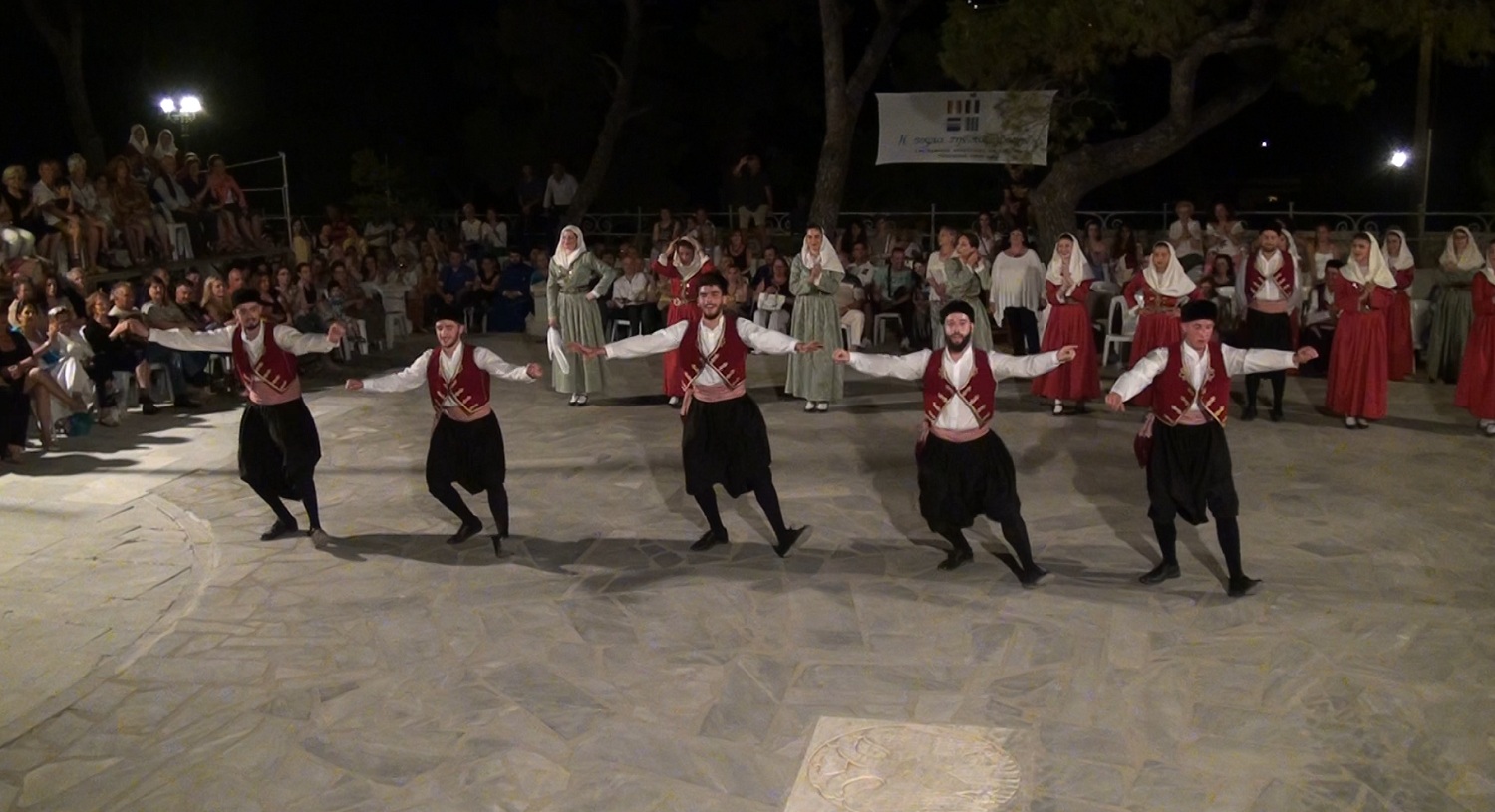 Τους θεατές καλωσόρισε η “ψυχή” του Ομίλου κ. Σοφία Λούβαρη, δίνοντας στη συνέχεια το βήμα στην φίλη και μέλος του χορευτικού τμήματος της Ερμούπολης κ. Μαριάννα Κρόντη για να μας μεταφέρει στα γαλανά νερά του Αιγαίου, μέσα από λόγια αγάπης και ψυχικού μεγαλείου, που δεν άφησαν κανέναν ασυγκίνητο.