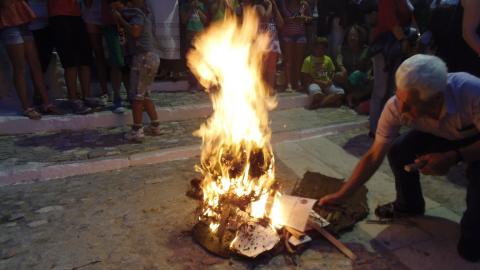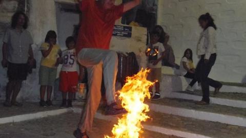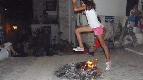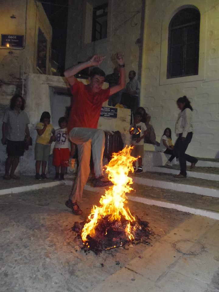 Τα έθιμα του Κλήδονα και του αφανού αναβίωσαν το βράδυ της Τρίτης πολιτιστικοί σύλλογοι της Σύρου, οι οποίοι καλούν κάθε χρόνο τους φίλους τους να φέρουν τα μαγιάτικα στεφάνια τους, να τα κάψουν, να πηδήξουν τις φωτιές και να διώξουν το κακό.
