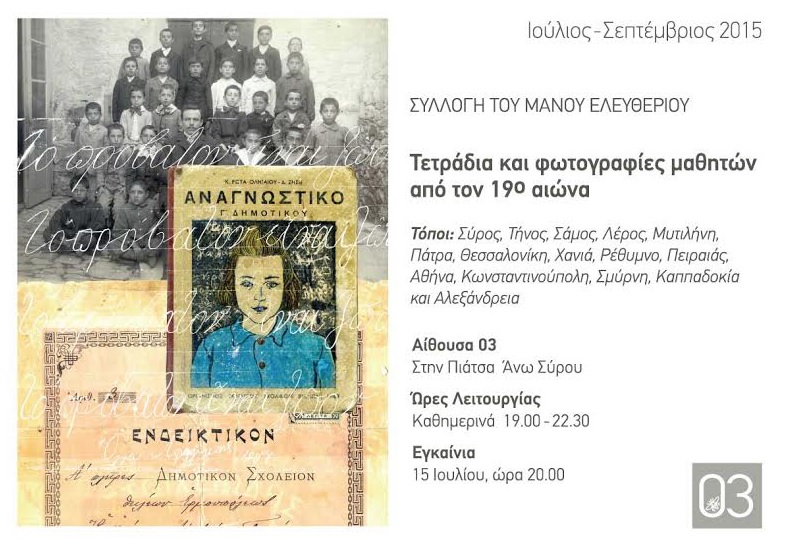 15 Ιουλίου - 15 Σεπτεμβρίου - Τετράδια και φωτογραφίες μαθητών από τον 19ο αιώνα - Συλλογή του ΜΑΝΟΥ ΕΛΕΥΘΕΡΙΟΥ