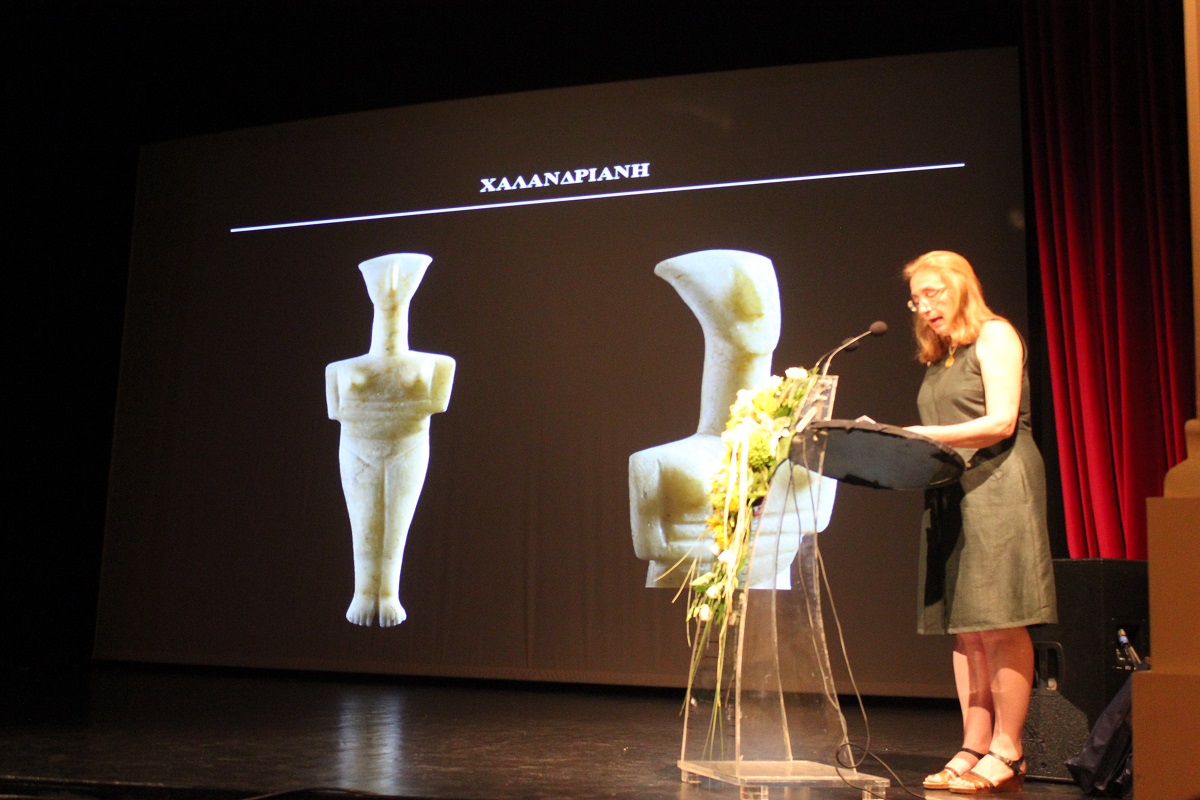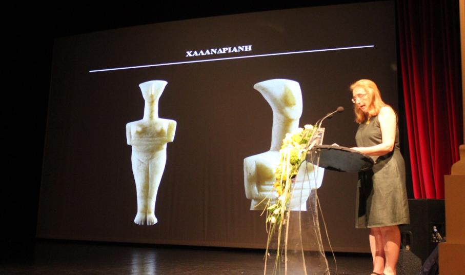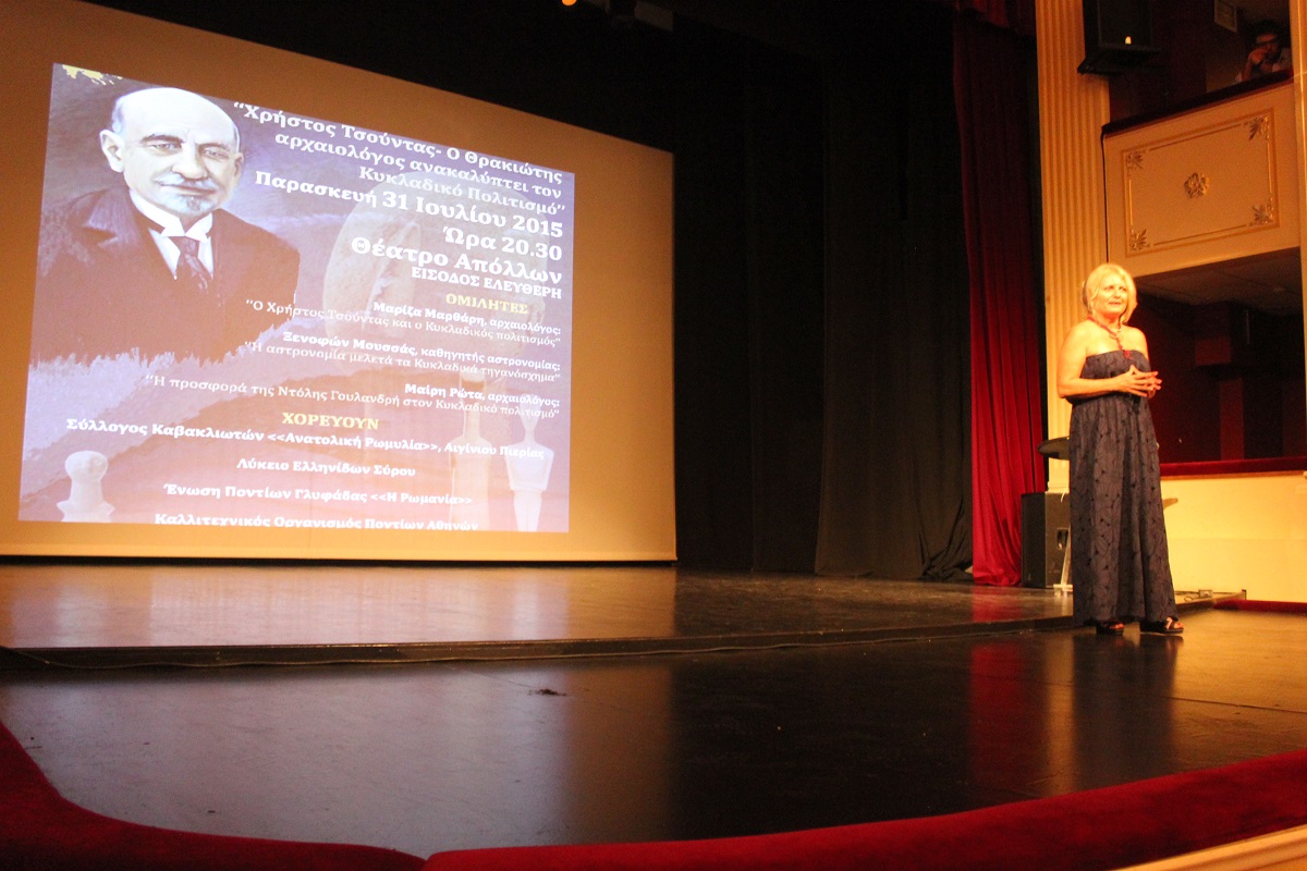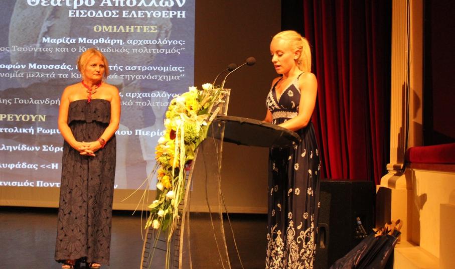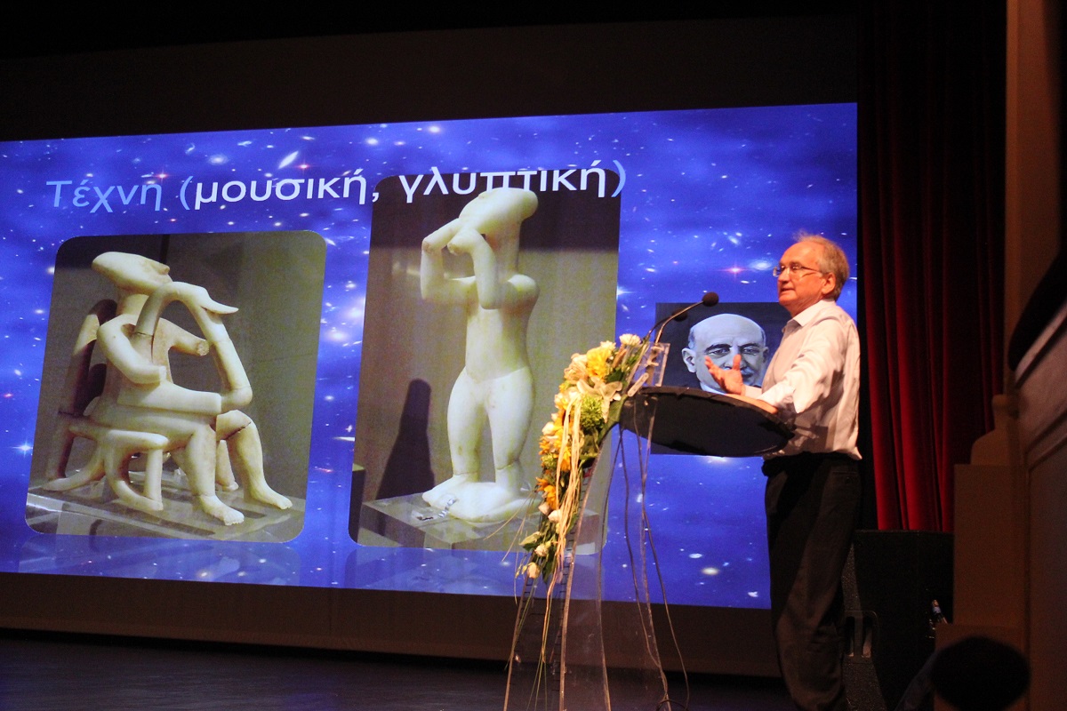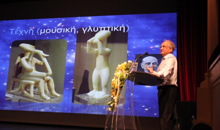 Στη συνέχεια, το λόγο πήρε ο καθηγητής αστρονομίας κ. Ξενοφών Μουσάς ο οποίος ανέπτυξε το θέμα «Η αστρονομία μελετά το Κυκλαδικό Τηγανόσχημα».