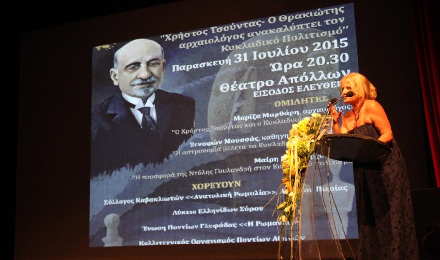 Τον κωδικοποιητή της Κυκλαδικής περιόδου και της έννοιας Κυκλαδικός πολιτισμός, Χρήστο Τσούντα, τίμησε χθες το βράδυ ο Σύλλογος Ποντίων και Βορειοελλαδιτών Σύρου.