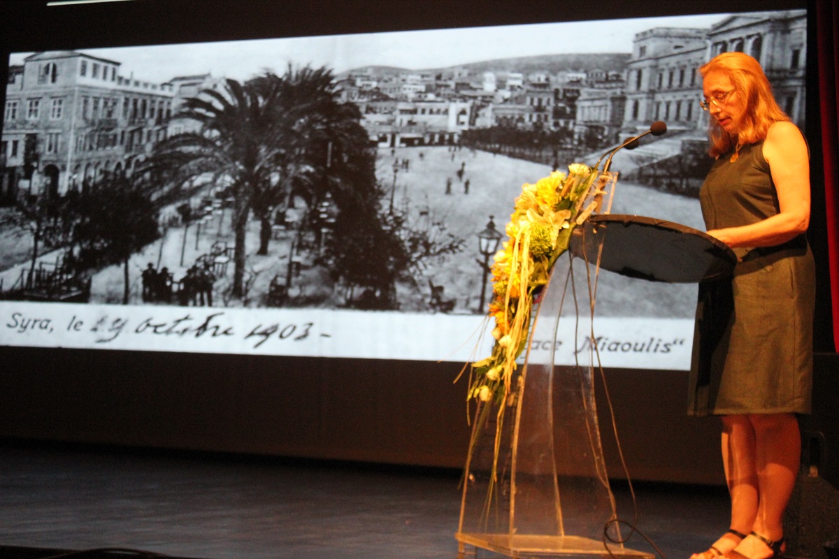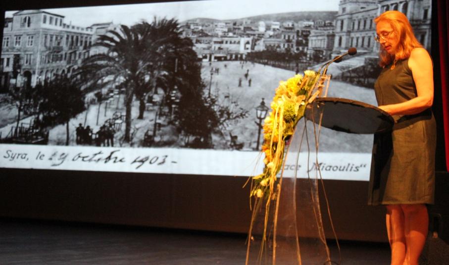 Χαιρετισμό απηύθυνε η Αντιδήμαρχος Πολιτισμού κ. Θωμαή Μενδρινού. Στην εκδήλωση παρευρέθηκαν επίσης ο δημοτικός σύμβουλος Γιάννης Βρούτσης και η σοπράνο κ. Σόνια Θεοδωρίδου η οποία στο πλαίσιο των διήμερων εκδηλώσεων του Συλλόγου Ποντίων και Βορειοελλαδιτών Σύρου θα τραγουδήσει απόψε στην Πλατεία Μιαούλη.