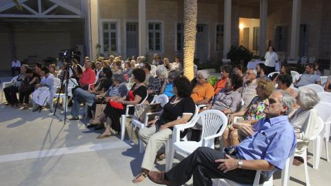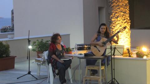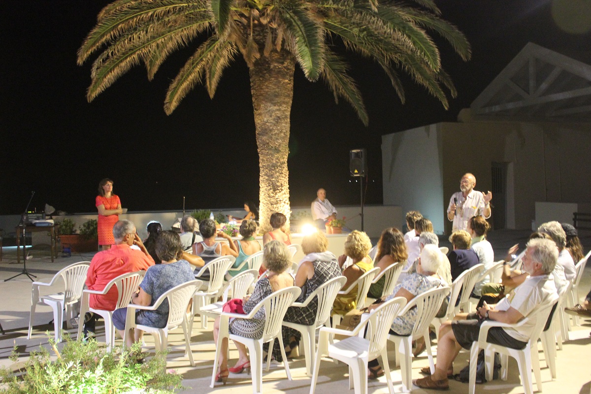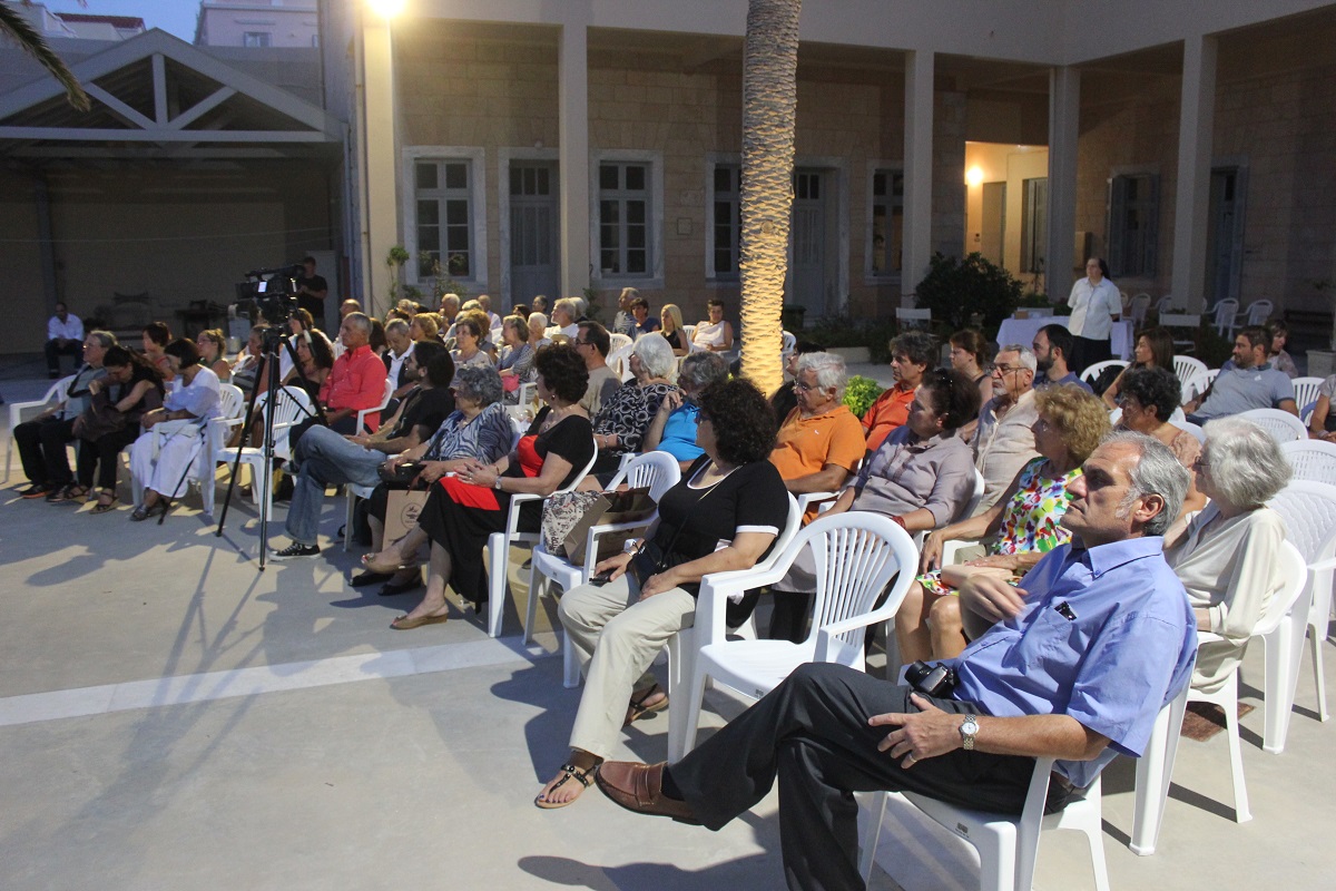 Η ενδιαφέρουσα αυτή εκδήλωση, που συντόνισε και οργάνωσε η ιστορικός τέχνης Μαρίζα Δαλεζίου, με την υποστήριξη του Δήμου Σύρου – Ερμούπολης, πραγματοποιήθηκε στον προαύλιο χώρο της Μονής Αδελφών του Ελέους, στο πλαίσιο της έκθεσης «Τετράδια και φωτογραφίες μαθητών από τον 19ο αιώνα» της συλλογής του Μάνου Ελευθερίου στην Άνω Σύρο.