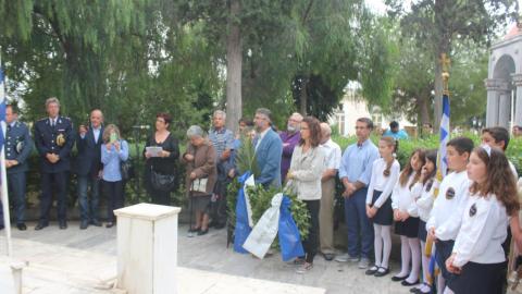 Μετά την επιμνημόσυνη δέηση στο Μνημείο Θυμάτων Κατοχής, κατατέθηκαν στεφάνια από εκπροσώπους των πολιτικών και στρατιωτικών αρχών του τόπου, καθώς και μαθητές του Γενικού Λυκείου Σύρου. Η τελετή ολοκληρώθηκε με ενός λεπτού σιγή και ανάκρουση του εθνικού μας ύμνου.