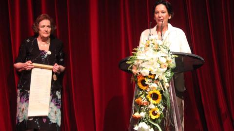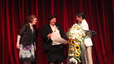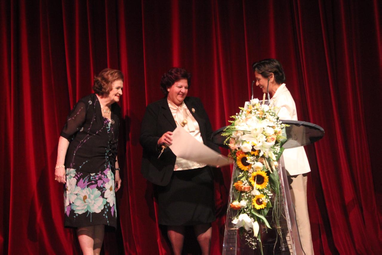 Στη συνέχεια, η κ. Λιγοψυχάκη και η Πρόεδρος του Λυκείου των Ελληνίδων κ. Ελένη Τσαλδάρη παρέδωσαν τη σκυτάλη με τις ημερομηνίες και τους τόπους διεξαγωγής όλων των Πανελληνίων Συνεδρίων του Λυκείου στην πρόεδρο του Λυκείου Ελληνίδων Ξάνθης κ. Πέπη Στάντσιου, που σε δύο χρόνια από σήμερα θα φιλοξενήσει την επόμενη διοργάνωση.