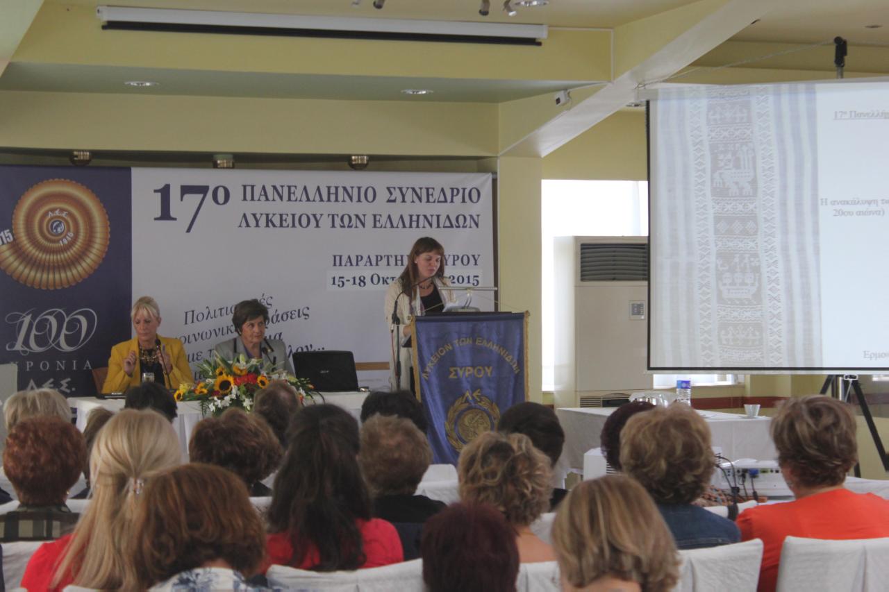 Στη Λυκειακή ιστορία του τόπου μας, όπου από το 1911 χιλιάδες γυναίκες ένωσαν τις δυνάμεις και το όραμά τους για τη διατήρηση των ελληνικών εθίμων και παραδόσεων, ανήκει πλέον το 17ο Πανελλήνιο Συνέδριο του Λυκείου των Ελληνίδων στη Σύρο, έχοντας αφήσει τις καλύτερες των εντυπώσεων στους συμμετέχοντες και ακροατές του.