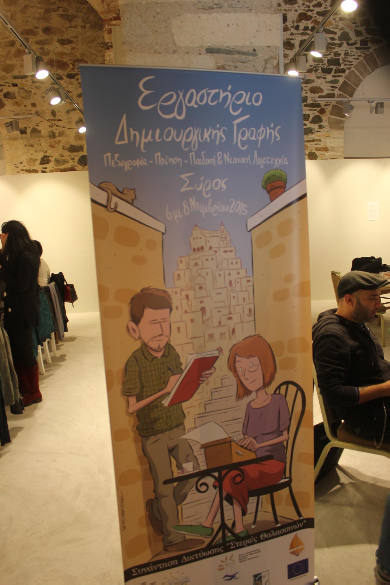 Από 6 έως και 8 Νοεμβρίου, τρεις εκπαιδευτές-συγγραφείς υποδέχτηκαν στην ανακαινισμένη Πινακοθήκη Κυκλάδων ενήλικες από τις Κυκλάδες, τα Δωδεκάνησα, την Εύβοια, την Κρήτη, τη Ζάκυνθο και την Κέρκυρα, μυώντας τους στον μαγικό κόσμο της λογοτεχνίας μέσα από θεωρητικές προσεγγίσεις, πρωτότυπες και βιωματικές ασκήσεις του γραπτού λόγου.