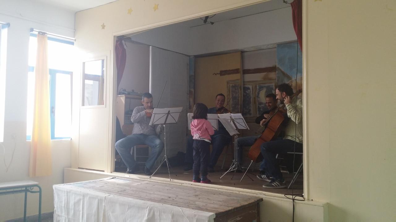 Στην Ερμούπολη ολοκληρώνεται σε λίγες ημέρες η αποστολή της Κρατικής Ορχήστρας Αθηνών να προσφέρει στις απομονωμένες Κυκλάδες του χειμώνα τα «δώρα» της κλασικής μουσικής στην εκπαίδευση και τον πολιτισμό, καθώς και το δικαίωμα των ίσων επιλογών στην πνευματική και καλλιτεχνική καλλιέργεια.