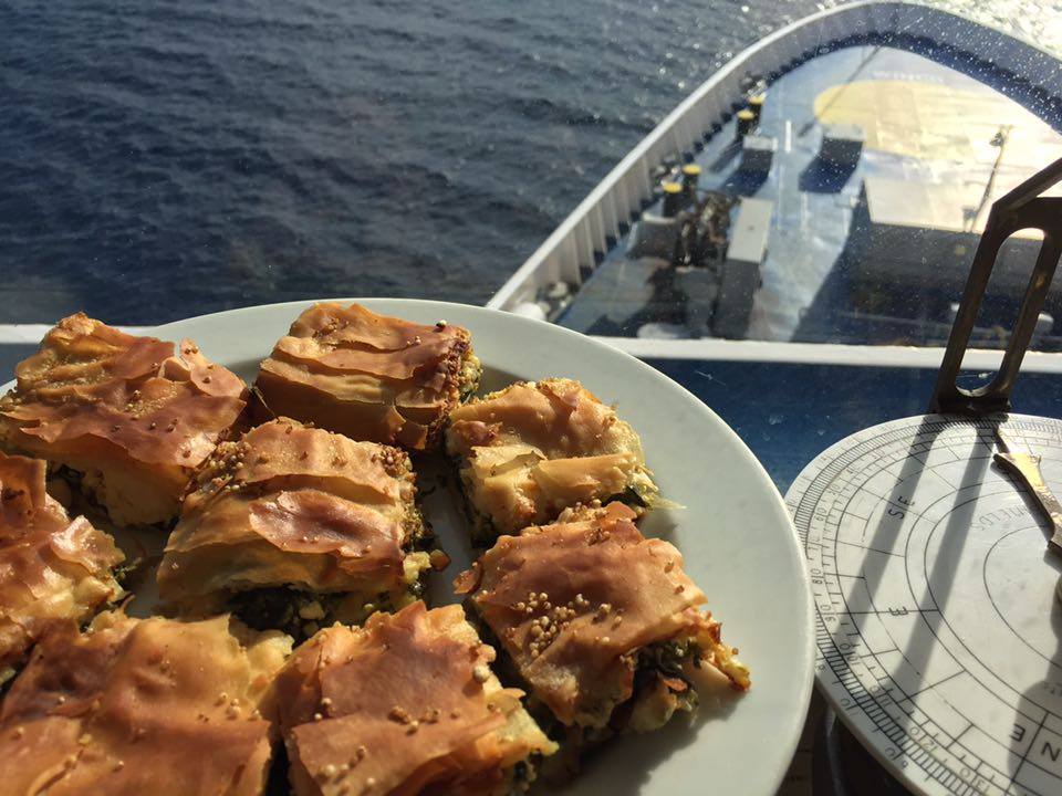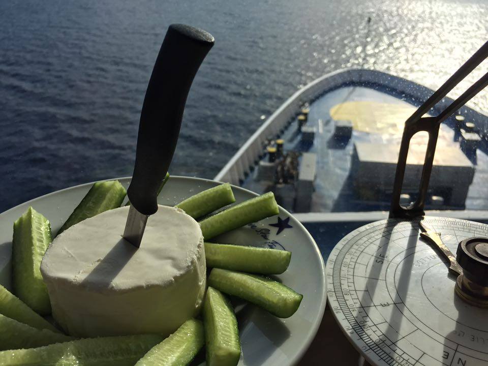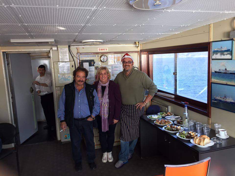 Σ΄ αυτήν την εκδήλωση, το σερβίρισμα έγινε στη γέφυρα του πλοίου, τιμώντας τον καπετάνιο Τάσο Τρέσσο, τους αξιωματικούς και το πλήρωμα του πλοίου.