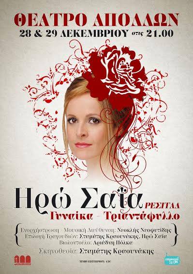 Η ιδιαίτερη ερμηνεύτρια Ηρώ Σαΐα, παράλληλα με τις εμφανίσεις της δίπλα στους πιο σημαντικούς Έλληνες συνθέτες και τραγουδιστές, παρουσιάζει στη Σύρο την επιτυχημένη μουσική παράσταση "Γυναίκα Τριαντάφυλλο".