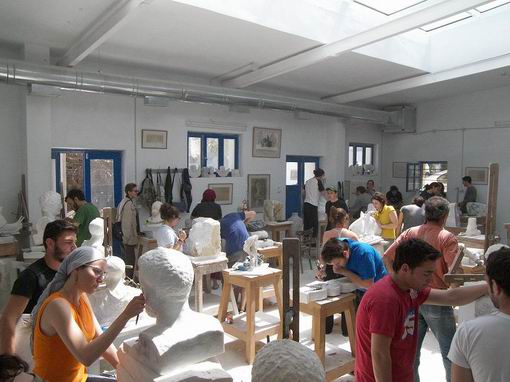 «Η παλιά παράδοση των Τηνιακών στην τέχνη του μαρμάρου επεκτείνεται, μετά το 1830, και στην Αθήνα. Δημιουργούν εκεί ένα ισχυρό δευτερογενές κέντρο και συνεργάζονται με Έλληνες και ξένους αρχιτέκτονες για τα νεοκλασικά μέγαρα της πρωτεύουσας, τις εκκλησίες της και την αναστήλωση των αρχαίων μνημείων», τονίζεται. «Από αυτούς θα προέλθουν οι πρώτοι μαθητές του Πολυτεχνείου και μεγάλος αριθμός καλλιτεχνών (Δημ. Φιλιππότης, Γ. Βιτάλης, Γιαννούλης Χαλεπάς, Λάζ. Σώχος, Ν. Γύζης, Νικηφ. Λύτρας και πολλοί άλλοι). Όλοι ανήκουν σε οικογένειες με παράδοση στο μάρμαρο και διδάχτηκαν την τέχνη στα πατρικά ή συγγενικά εργαστήρια».