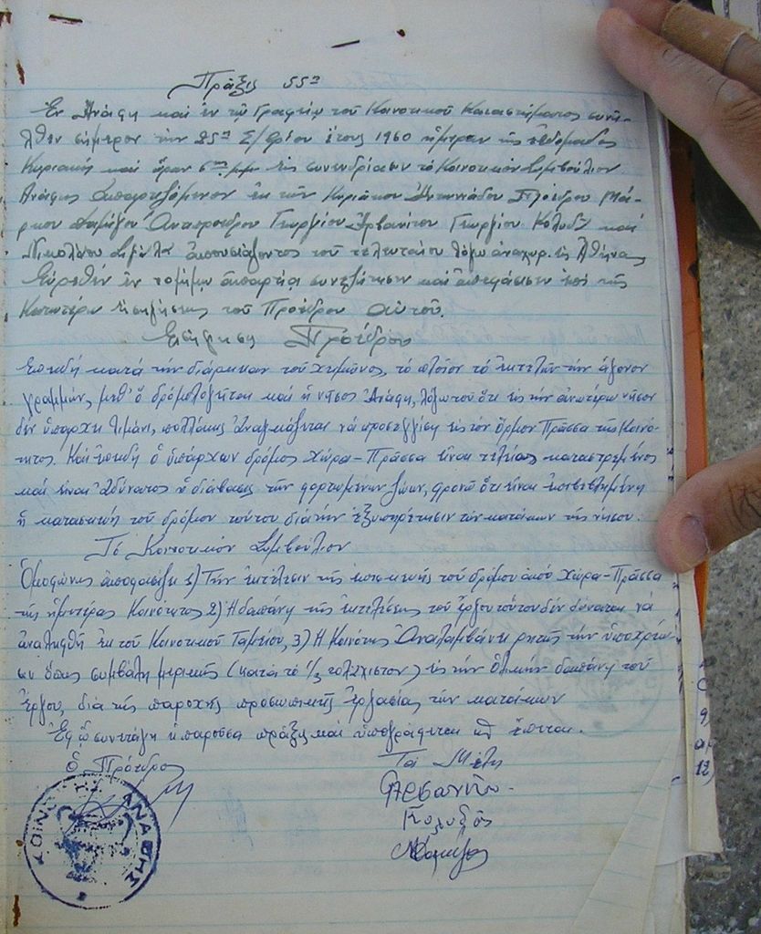 Το μεγαλύτερο μέρος των τεκμηρίων που εντόπισε στο νησί της Ανάφης το 2010 η επιστημονική ομάδα του Εθνικού Ιδρύματος Ερευνών περιλαμβάνει φακέλους και λιτά έγγραφα από την περίοδο του Μεσοπολέμου, ενώ λίγα κατάστιχα χρονολογούνται από τον 19ο αιώνα. Αυτά αφορούν στο Μητρώο της Κοινότητας (1834-1925), στο Μητρώο Αρρένων του 1833, στο Μητρώο Θηλέων του 1878 και στο Μητρώο Αρρένων (1891-1911).