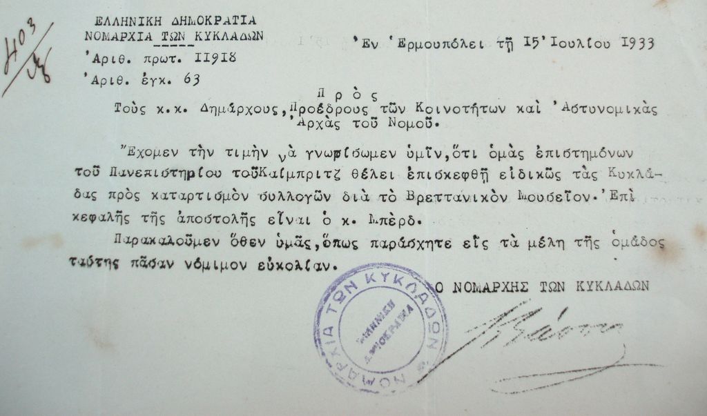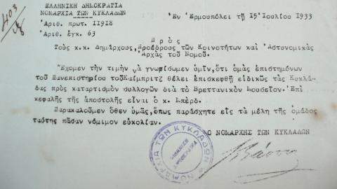 Στη συγκέντρωση, ευρετηρίαση και ψηφιακή παρουσίαση του αρχειακού αποθέματος των Κυκλάδων με επίκεντρο το τεκμηριωτικό υλικό των δήμων και των παλαιών κοινοτήτων τους, προχώρησε το Ινστιτούτο Ιστορικών Ερευνών του Εθνικού Ιδρύματος Ερευνών σε συνεργασία με τα Γενικά Αρχεία του Κράτους – Αρχεία Νομού Κυκλάδων.