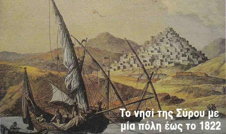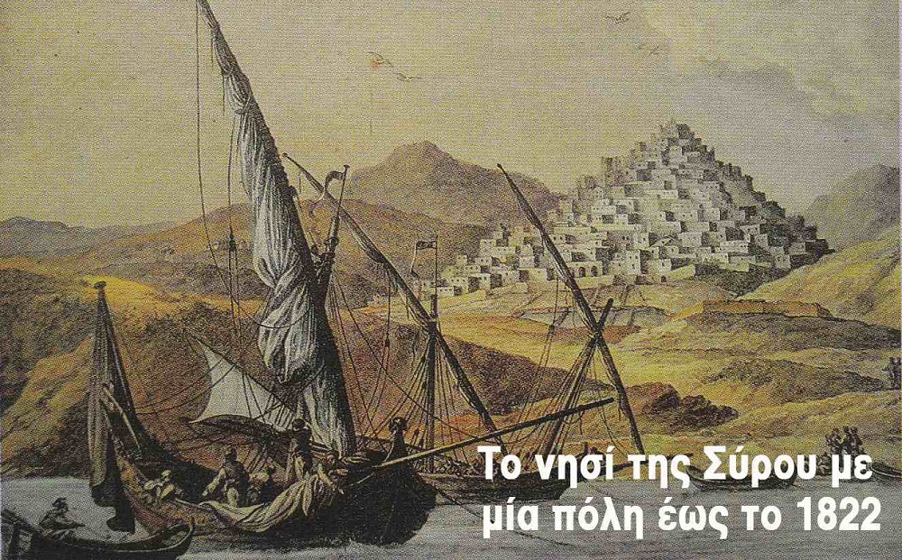 Η Σύρος, στα χρόνια πριν από τον Αγώνα ήταν αραιοκατοικημένη και όχι γνωστή. Οι κάτοικοί της, (περίπου 4.000) ζούσαν συγκεντρωμένοι στη μοναδική πόλη του νησιού, την Άνω Σύρο. Η Ελληνική όμως Επανάσταση «ως άλλη Λητώ περιπλανωμένη και ωδίνουσα εγέννησε φιλοξενηθείσα εν Σύρω, την Ερμούπολιν», που η ίδρυσή της έμελλε να αλλάξει ριζικά την τύχη του νησιού.