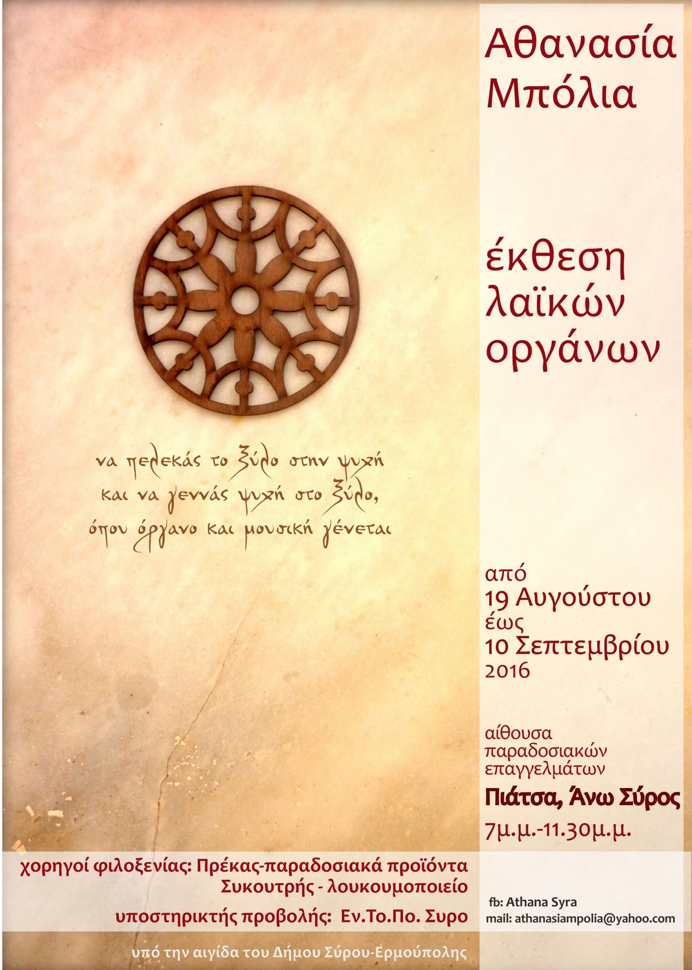 Email: athanasiampolia@yahoo.com, fb: Athana Syra, τηλ.: 6932393242