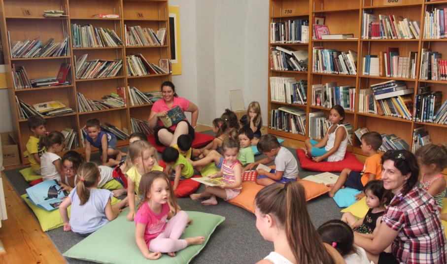Η υπεύθυνη κ. Σκαβάκη και οι εθελόντριες της Βιβλιοθήκης Ευγενία Σαγκινέτου, Ελπίδα Ρηγούτσου, Ματίνα Αληφραγκή, Πόπη Παγώνη και Άννα Πλυτά υποδέχονται κάθε Παρασκευή τους μικρούς φίλους τους για να ολοκληρωθεί όμορφα και δημιουργικά η εβδομάδα που θα αφήσουν πίσω τους.