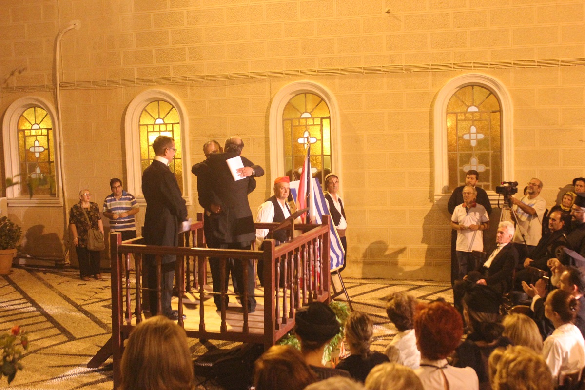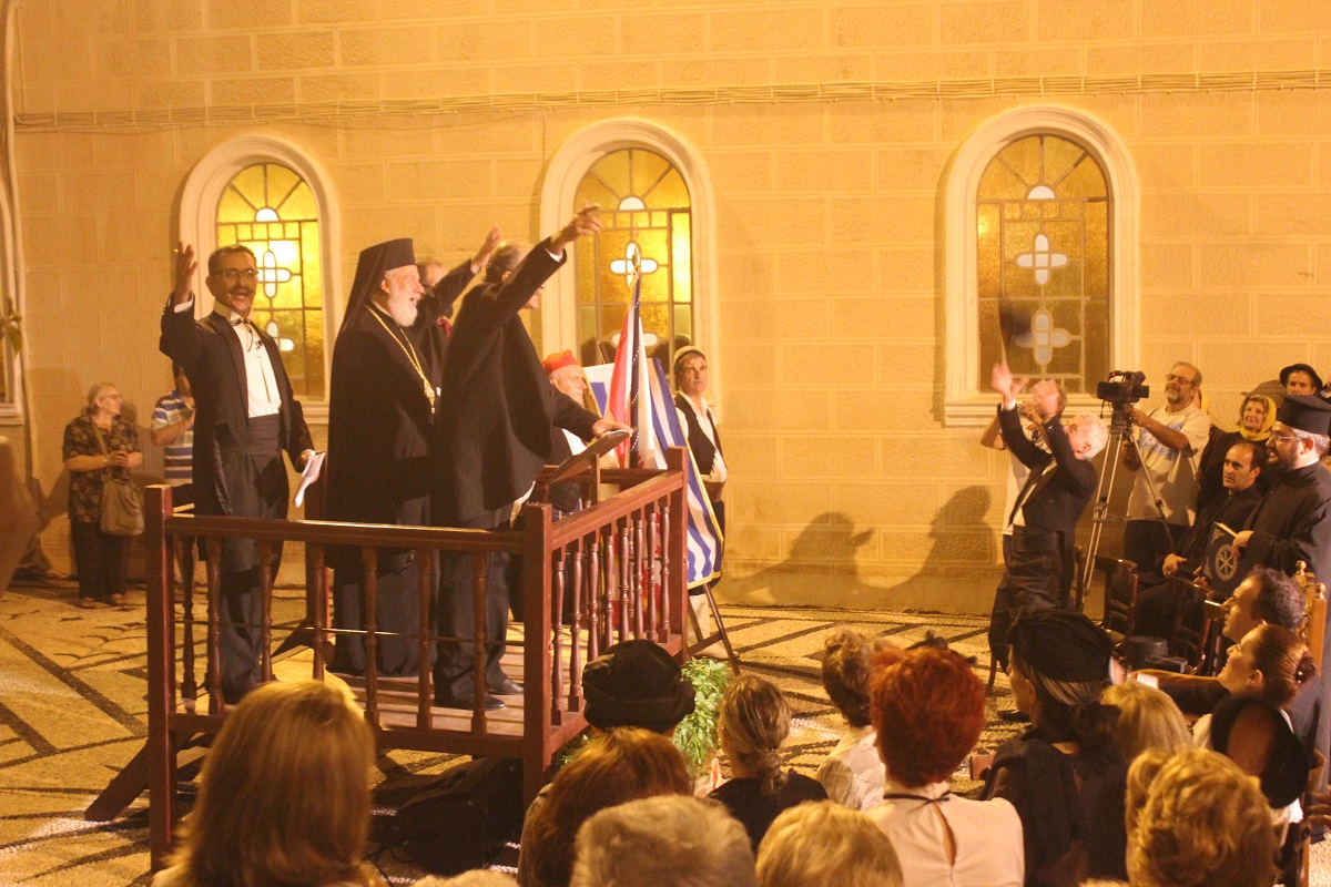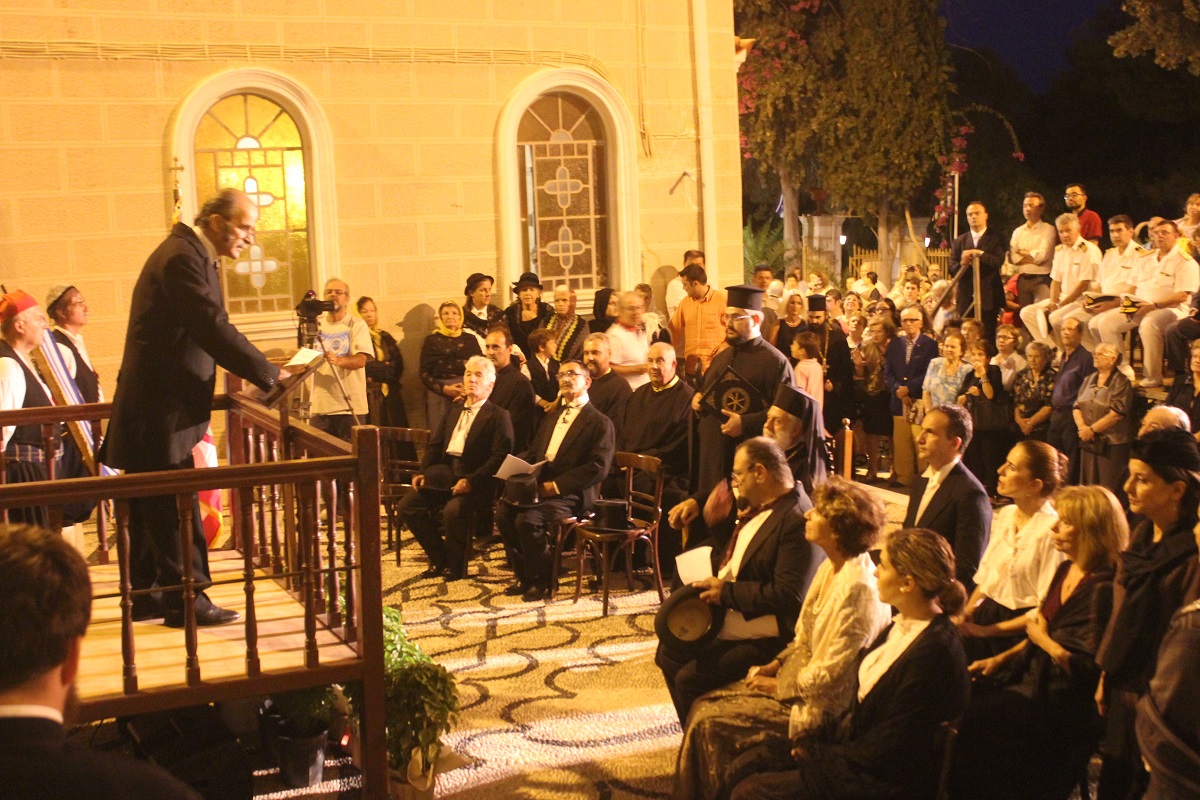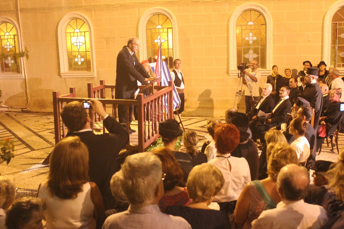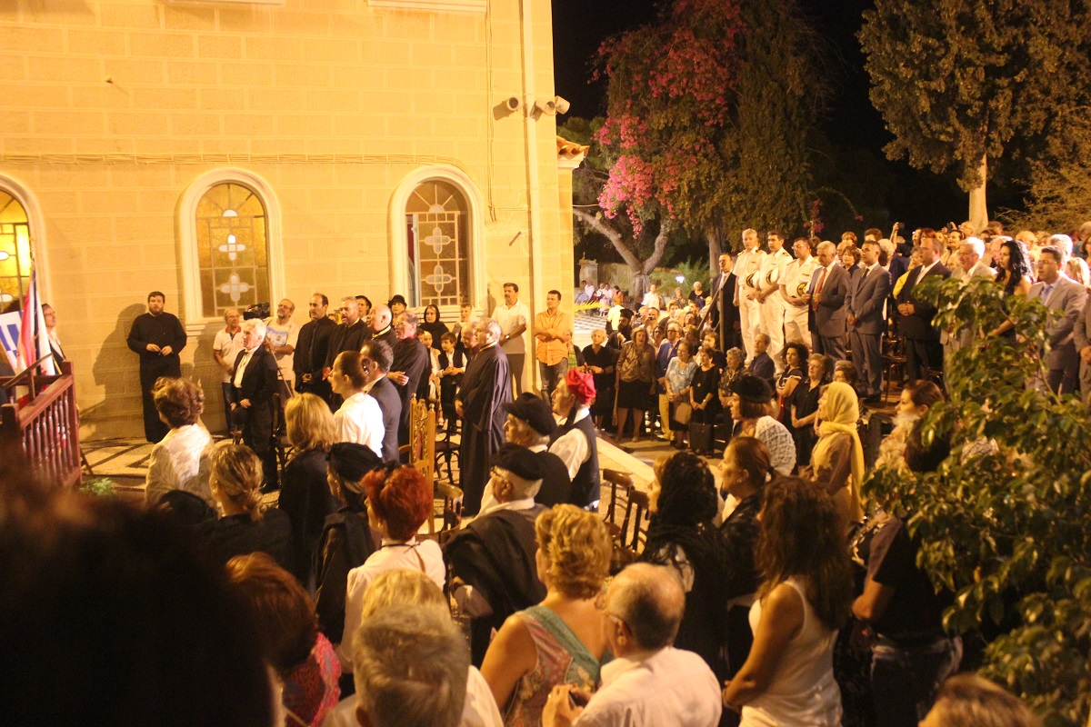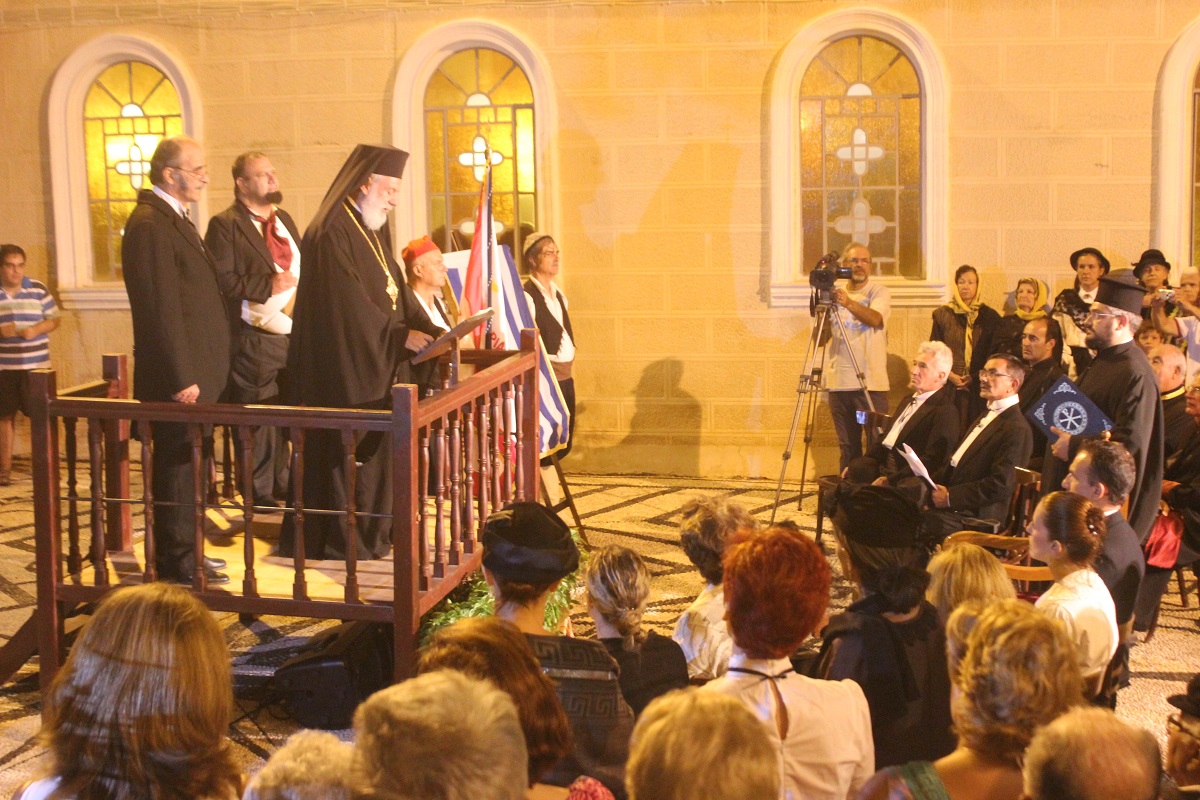 Η εκδήλωση ολοκληρώθηκε με το «Τη Υπερμάχω», που έψαλλαν ομοθυμαδόν οι παριστάμενοι, υπό τις κωδωνοκρουσίες των Ιερών Ναών Μεταμορφώσεως και Αγίου Νικολάου.
