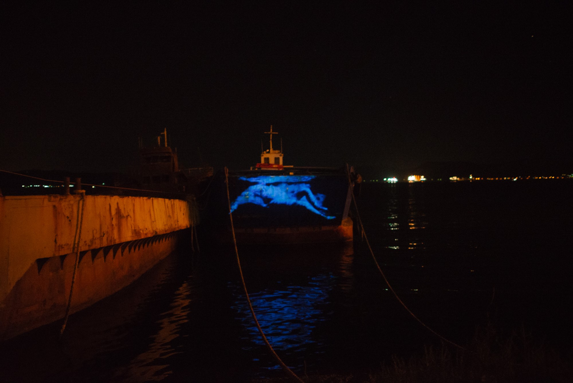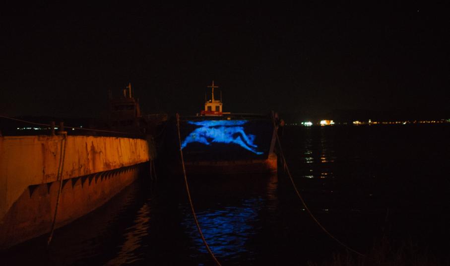 Στο πλαίσιο του Φεστιβάλ «Αισχύλεια 2016» πραγματοποιήθηκαν προβολές video installation art πάνω σε αγκυροβολημένα, αποσυρμένα πλοία που μετέτρεψαν τον κόλπο της Ελευσίνας σε θάλασσα πολιτισμού.