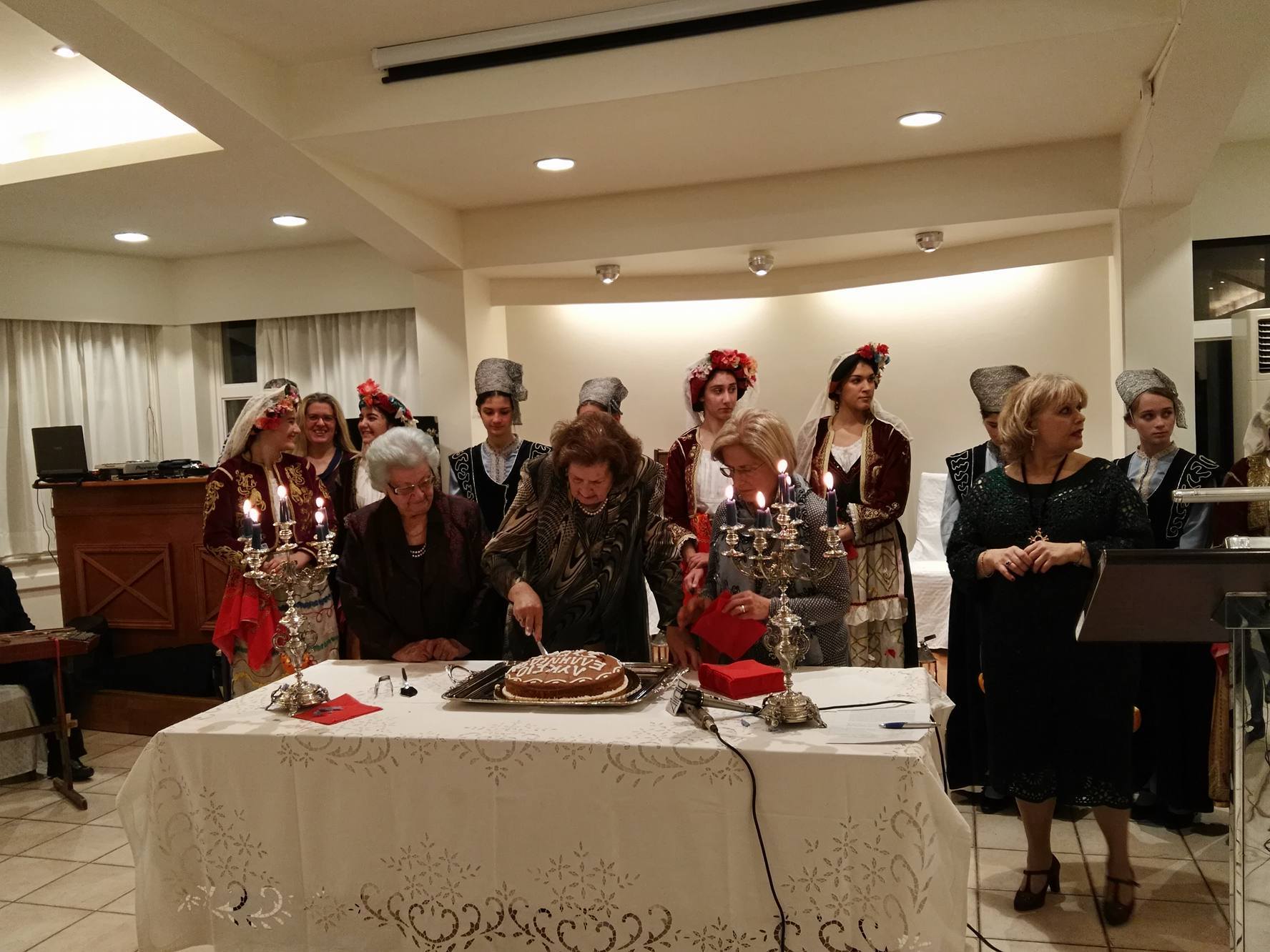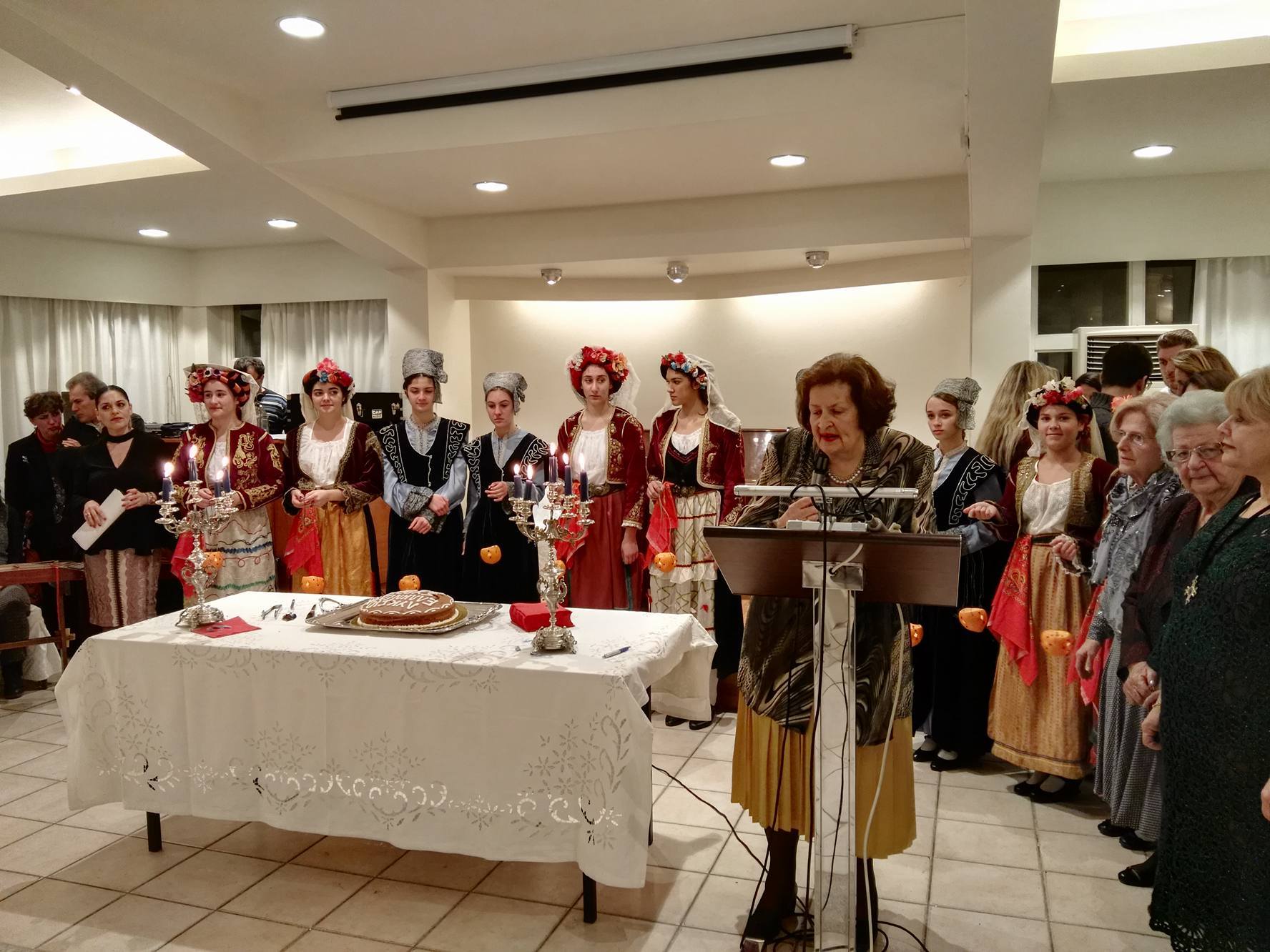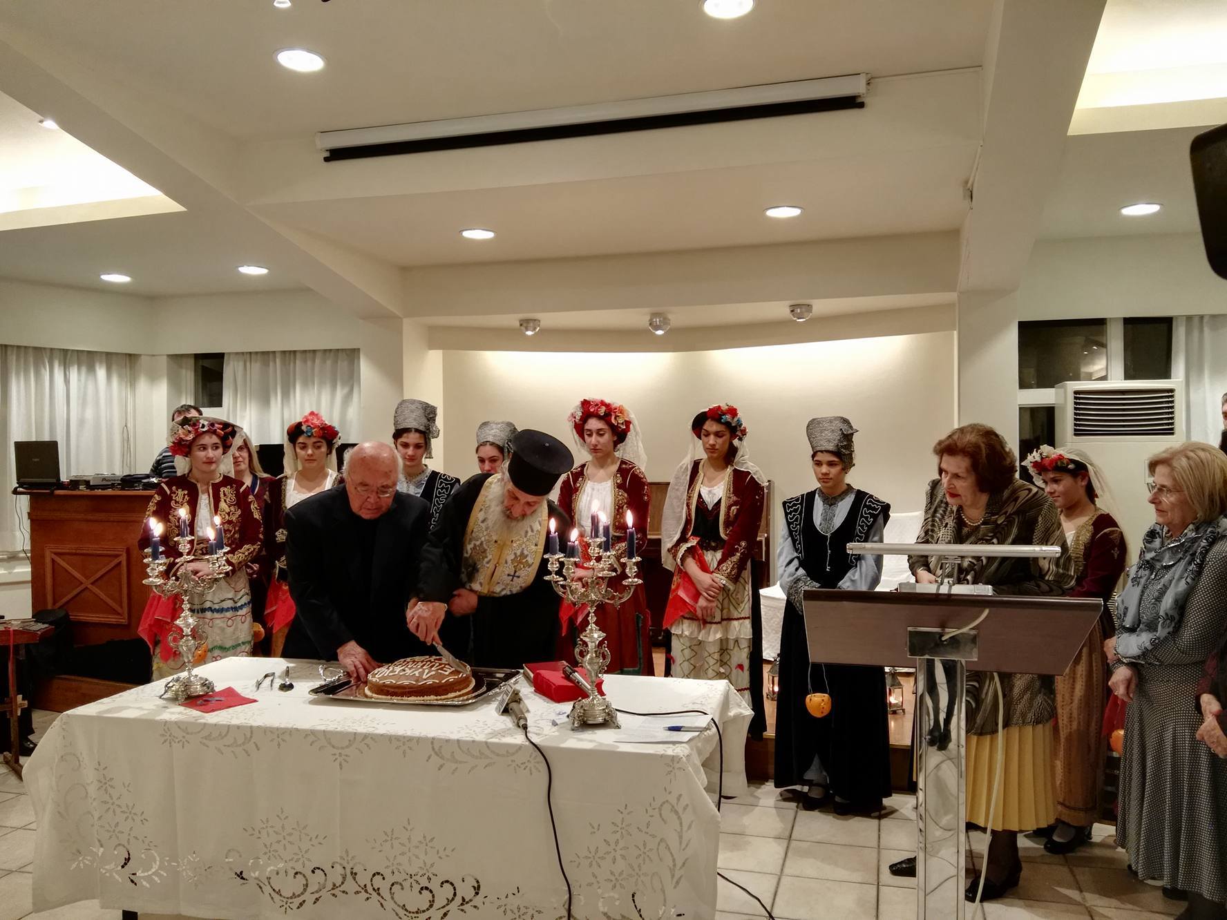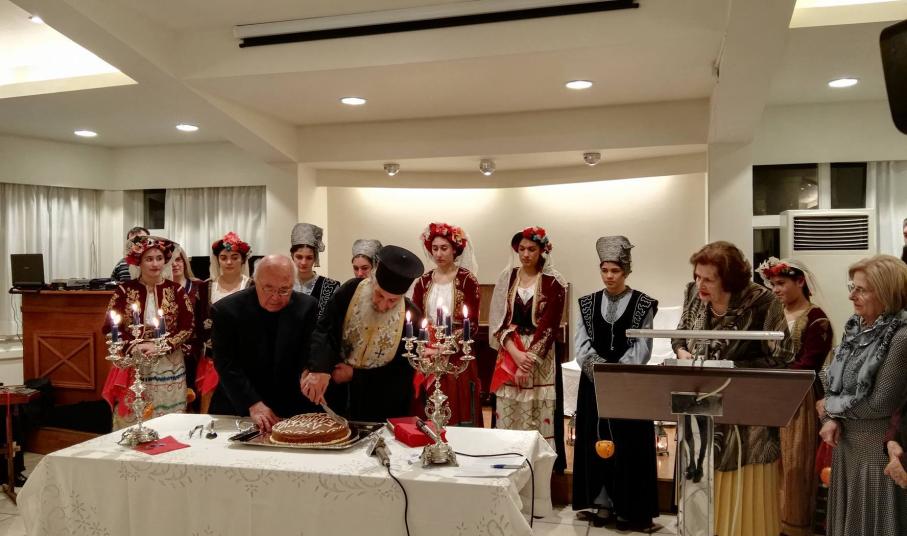 Κατόπιν της ευλογίας των δύο εκπροσώπων της Ορθόδοξης και της Καθολικής Εκκλησίας, η κ. Λιγοψυχάκη πλαισιωμένη από τα μέλη του ΔΣ του Λυκείου Ελληνίδων Σύρου έκοψε την πίτα, ευχαριστώντας το σύνολο των ανθρώπων που στηρίζουν τη δράση του.