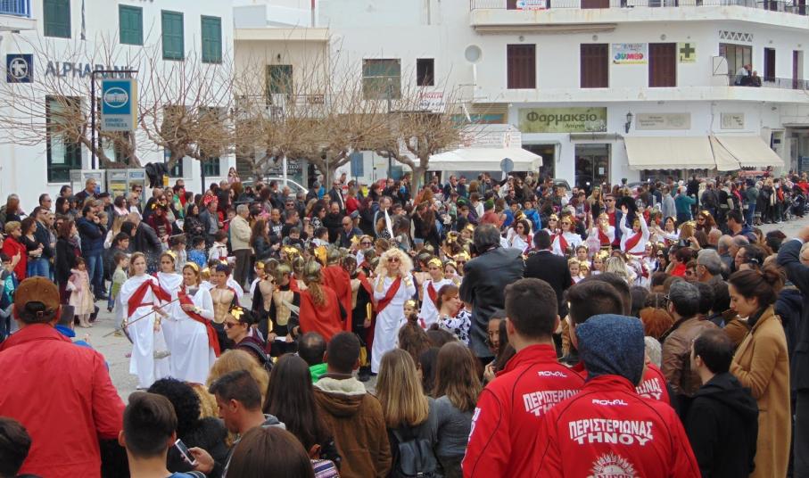 Ο κόσμος διασκέδασε μαζί με τους καρναβαλιστές, οι οποίοι φρόντισαν οι θεατές να μη μείνουν ούτε στιγμή “ήσυχοι”, ενώ παράλληλα τα άρματα και οι ομάδες παρήλαυναν στον παραλιακό δρόμο, έως και την Παλλάδα, όπου τους περίμενε και κέρασμα από το Δήμο Τήνου.