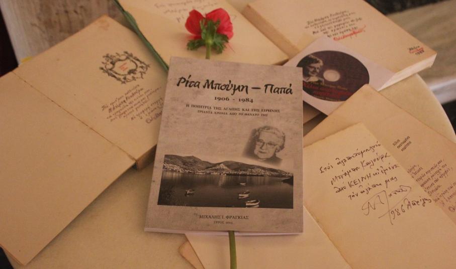 Η μνήμη της Συριανής ποιήτριας της αγάπης και της ειρήνης, Ρίτας Μπούμη - Παπά, η οποία με την πένα και τον λόγο της υπερασπίστηκε την ανθρώπινη αξιοπρέπεια, την καλοσύνη, την ελευθερία, την ειρήνη και την αλληλεγγύη, τιμήθηκε στο πλαίσιο του εορτασμού της Παγκόσμιας Ημέρας της Γυναίκας στη Σύρο.