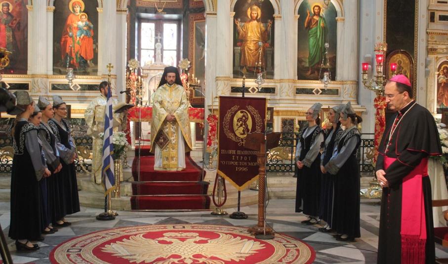Στο πλαίσιο των εορταστικών εκδηλώσεων, το πρωί της Κυριακής τελέστηκε Δοξολογία στον Ιερό Ναό Αγίου Νικολάου, παρουσία του Καθολικού Επισκόπου Σύρου Σεβ. π. Πέτρου Στεφάνου, του Αντιπεριφερειάρχη Κυκλάδων Γιώργου Λεονταρίτη, της Αντιδημάρχου Πολιτισμού Θωμαής Μενδρινού, εκπροσώπων των ενόπλων δυνάμεων και των σωμάτων ασφαλείας, τοπικών συλλόγων και φορέων.