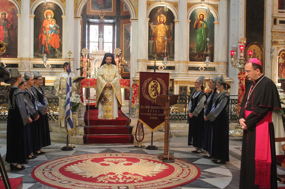 Μετά το πέρας της ομιλίας, ακολούθησε επιμνημόσυνη δέηση και κατάθεση στεφάνων στο Εθνικό Ηρώο της πόλης.