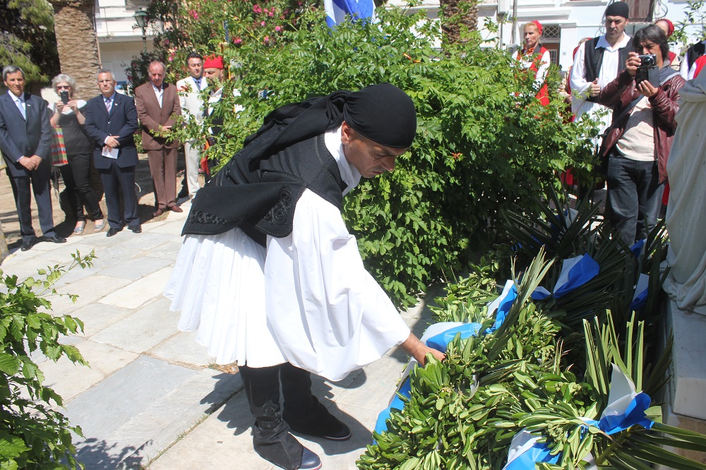 Τον ηρωισμό, τη γενναιότητα και τη μαχητικότητα των Ελλήνων, καθώς και τη διδαχή των ιστορικών γεγονότων για τις νεότερες γενιές υπογράμμισε στην ομιλία του, ο ιστορικός και μέλος του Συλλόγου Πελοποννησίων Σύρου, Σωτήρης Νικολακόπουλος.