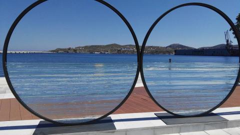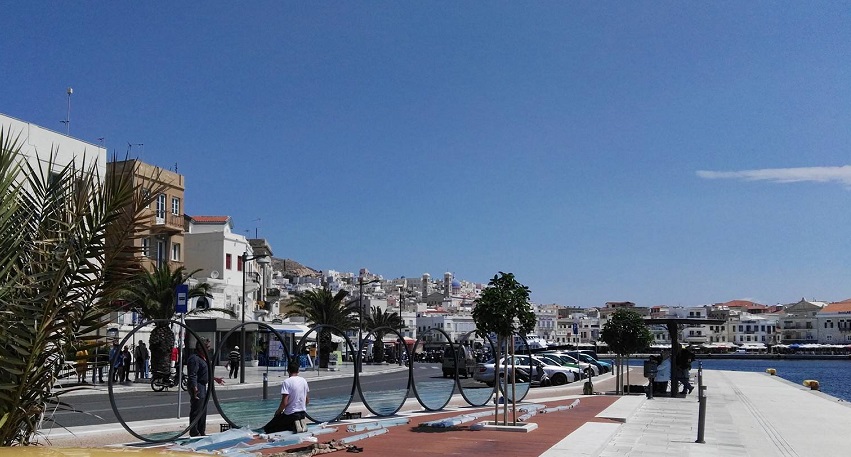 Έναν “διάλογο” πολιτισμού και τέχνης με την πρωτεύουσα των Κυκλάδων αναπτύσσει το γλυπτό έργο του σπουδαίου Έλληνα γλύπτη Κώστα Βαρώτσου, το οποίο και τοποθετήθηκε το πρωί της Τρίτης σε τμήμα του παραλιακού μετώπου της Ερμούπολης.