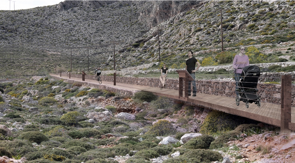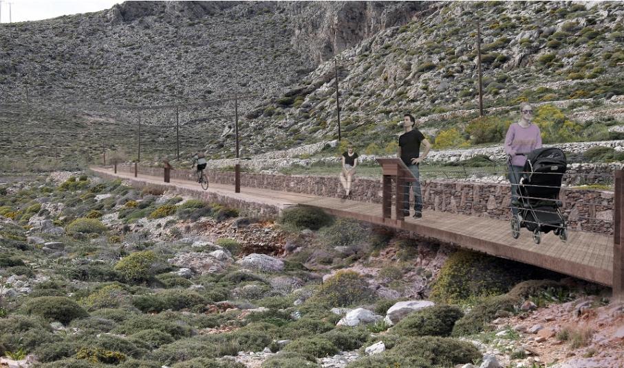 Παράλληλα, η κατασκευή του πεζόδροµου που θα ενώνει τον Καραβοστάση µε τη Χώρα θα διαµορφώσει µια ασφαλή ζώνη µετακίνησης των πεζών δίπλα στη σηµερινή οδό, µε προδιαγραφές για την εξυπηρέτηση Ατόµων Μειωµένης Κινητικότητας.