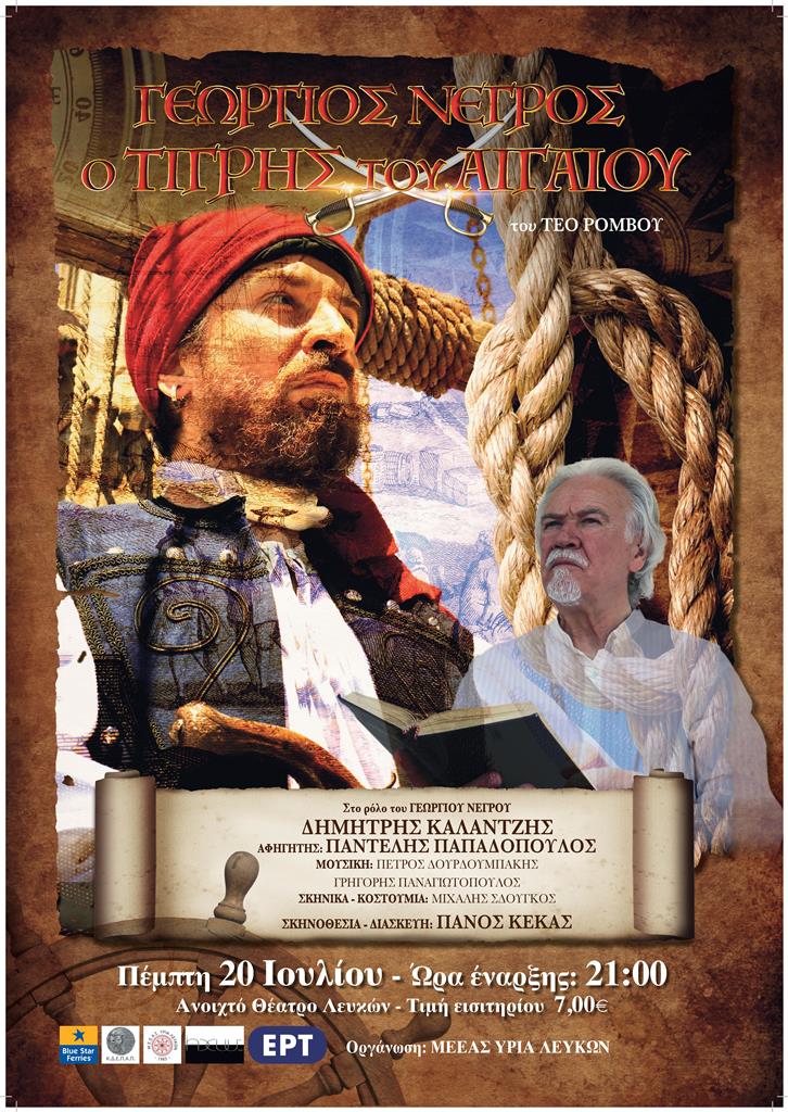 Η παράσταση είναι η θεατρική εκδοχή του μυθιστορήματος Γεώργιος Νέγρος, Ο Τίγρης του Αιγαίου, του Τέο Ρόμβου.