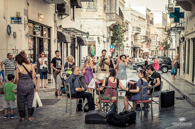 Κάθε βράδυ τιμούμε και παίζουμε ακορντεόν σε ένα διαφορετικό μέρος του νησιού.