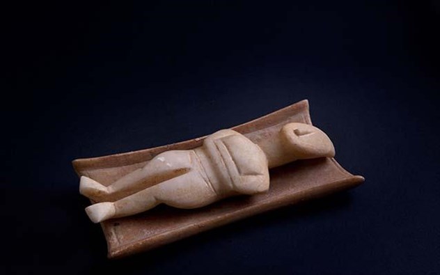 Το απόκρημνο γεωγραφικό ανάγλυφο, ο θαλάσσιος περιορισμός και η ανάγκη ώθησαν τη δημιουργία ενός ανθρωποκεντρικού πολιτισμού, όπου η ανθρώπινη μορφή (γυναικεία & ανδρική) σε ειδώλια κυριαρχεί, μιλώντας εύγλωττα για την κοινωνική ιεραρχία, τις ασχολίες, τις πίστεις και τις δοξασίες των προϊστορικών Κυκλαδιτών. Μέσα από την έκθεση, οι επισκέπτες του Διεθνούς Αερολιμένα Αθηνών θα πάρουν μια πρώτη εικόνα για το πώς ήταν οι Κυκλάδες το 3000 π.Χ., πριν επισκεφθούν σήμερα τα νησιά του Αιγαίου.
