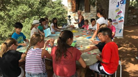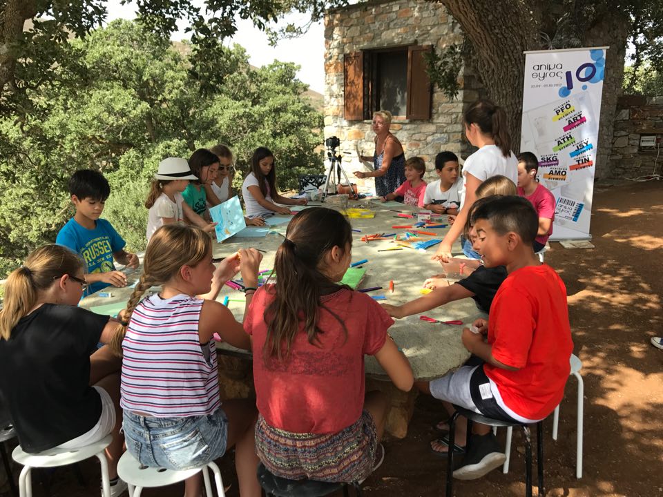 Το πρόγραμμα ξεκίνησε με το πρωινό εργαστήριο της εκπαιδεύτριας Κατερίνας Κρεμασιώτη, που είχε ως θέμα την Τήνο και τις παραδόσεις της. Παιδιά ηλικίας 10-12 ετών έκατσαν γύρω από το μαρμάρινο τραπέζι και ξεκίνησαν να σκέφτονται, να φαντάζονται και να κατασκευάζουν μια animated Τήνος.