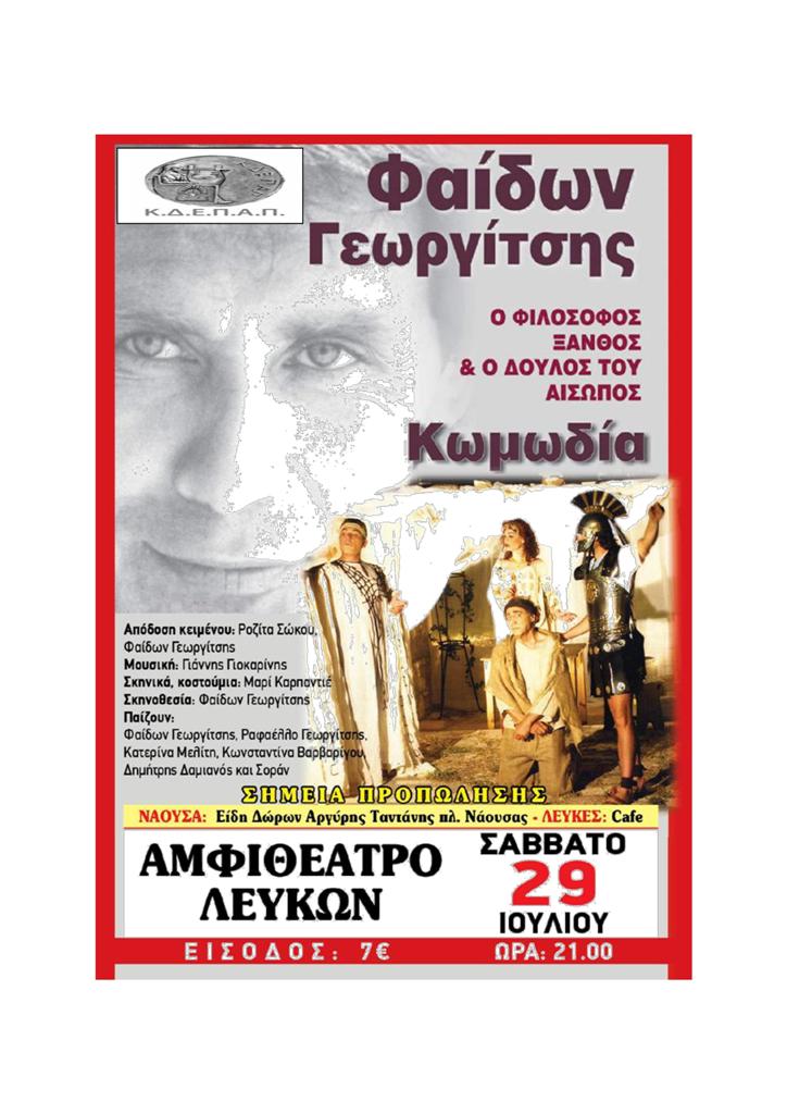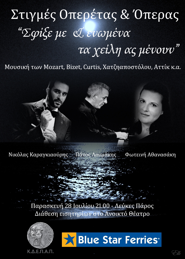 Η ΚΔΕΠΑΠ, υπό την αιγίδα του Δήμου Πάρου, παρουσιάζει δύο βραδιές γεμάτες θέατρο και μουσική, στο αμφιθέατρο των Λευκών.