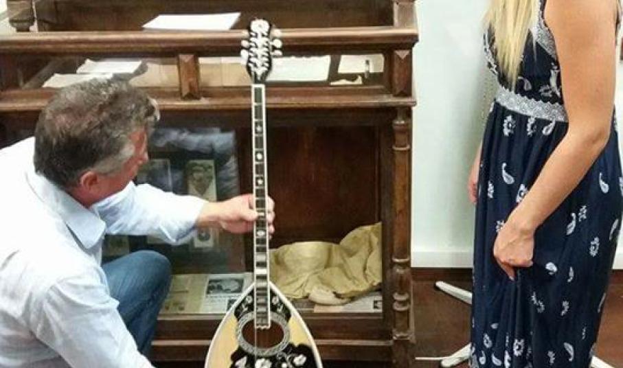 Το μουσικό αυτό όργανο, που αποτελεί το πρώτο μπουζούκι που εκτίθεται στο συγκεκριμένο χώρο, δωρήθηκε στο Δήμο Σύρου – Ερμούπολης, κατά την έναρξη του 2ου Φεστιβάλ Ρεμπέτικου στην Έπαυλη Τσιροπινά, στην Ποσειδωνία.