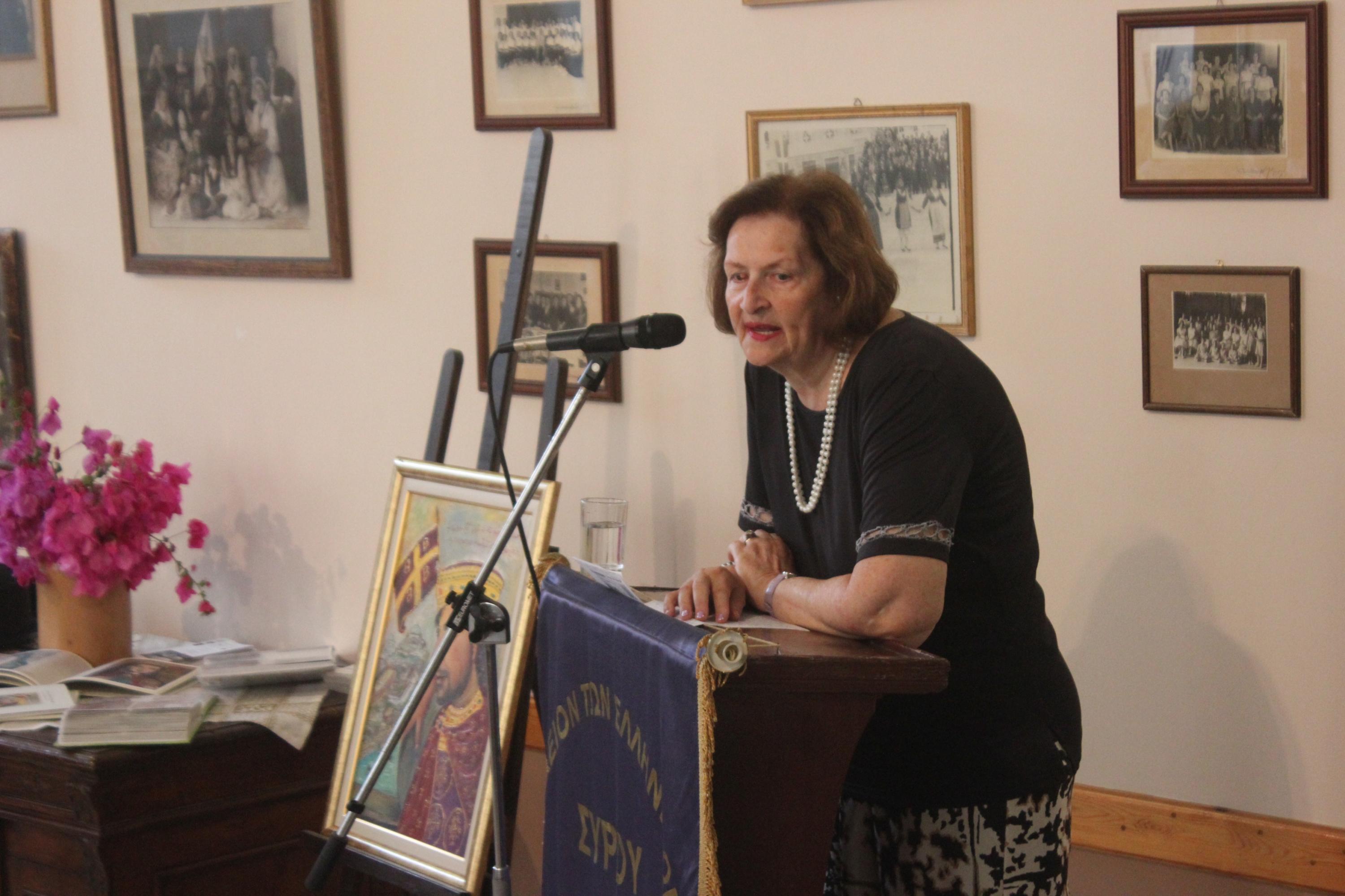 Η πρόεδρος του Λυκείου κ. Χριστίνα Λιγοψυχάκη καλωσόρισε παλαιούς και νέους μαθητές και ευχαρίστησε τους γονείς για την εμπιστοσύνη τους, που αποτελεί μία ακόμα απόδειξη της εκτίμησης του έργου του πάνω στην παράδοση και την εθνική κληρονομιά μας, αλλά και της αποδοχής του από τη συριανή κοινωνία.