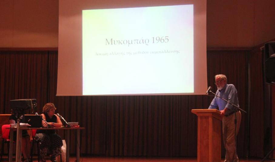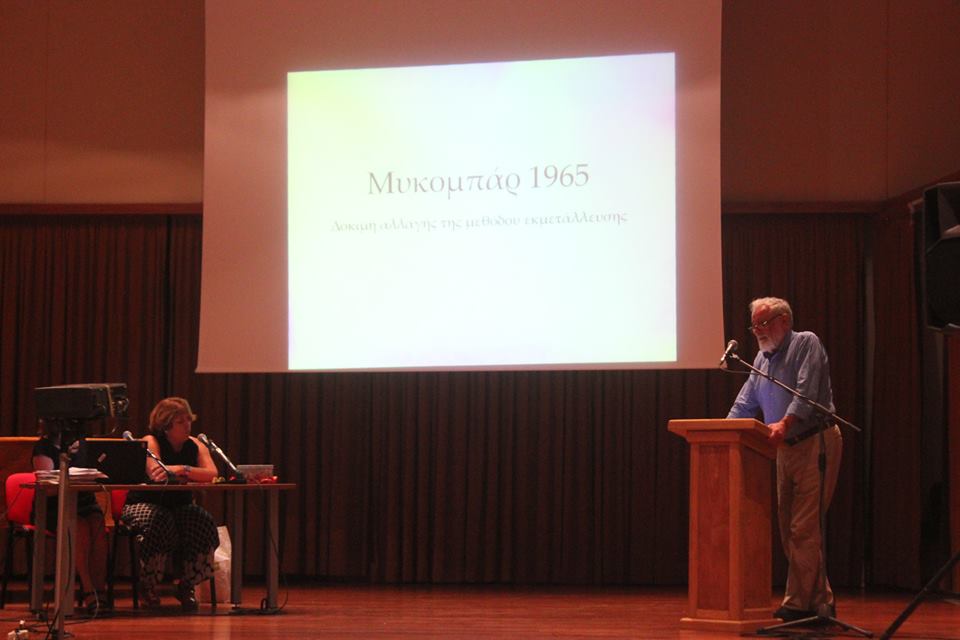 Η «Κοινή Γνώμη» είχε την ευκαιρία να παρακολουθήσει την κεντρική ημερίδα του τριημέρου με θέμα «Τα μεταλλεία των Κυκλάδων», όπου συμμετείχαν εισηγητές από διάφορα νησιά του νομού. Οι ομιλητές ενημέρωσαν το κοινό για τη μεταλλευτική δραστηριότητα της Μήλου, της Κύθνου, της Σερίφου, της Κιμώλου και φυσικά της Μυκόνου, για την οποία υπήρξε ξεχωριστή ενότητα με την πολύτιμη συμβολή της Δήμητρας Λοΐζου – Βουλγαράκη, Ερευνήτριας της Τοπικής Ιστορίας της Μυκόνου, που ασχολείται με το Μεταλλείο Βαρίτη της Μυκόνου «Μύκομπάρ» από το 2003.