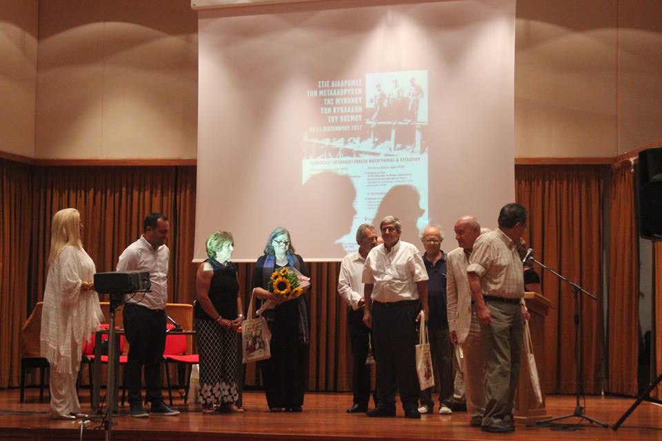 Ιδιαίτερες ευχαριστίες απηύθυνε στην κ. Δήμητρα Λοΐζου – Βουλγαράκη, που όπως τόνισε, έχει μελετήσει το θέμα των μεταλλείων της Μυκόνου περισσότερο από οποιονδήποτε άλλον, συγκεντρώνοντας με μεράκι και κόπο ζωής ένα πλούσιο υλικό, το οποίο μελλοντικά θα εκδοθεί και θα αποτελέσει τη βάση για την παραγωγή ενός ντοκιμαντέρ. Ανέφερε δε, την πρόθεσή του για τη χρηματοδότηση της εν λόγω ταινίας από το Δήμο. Καταλήγοντας, επεσήμανε πως το θέμα των μεταλλείων και των ανθρώπων αποτελεί ένα κομμάτι της ιστορίας της Μυκόνου και της οικονομικής ανάπτυξης του νησιού σε δύσκολα χρόνια. Πρόσθεσε μάλιστα, πως στα 30 χρόνια λειτουργίας της Μύκομπαρ, έγιναν πάρα πολλές εργασίες και δωρεές από την εταιρεία στο νησί, όπως έργα οδικού δικτύου, συγκοινωνιών, ηλεκτροφωτισμού που συνέβαλαν στην ανάπτυξή του. «Η διάδοση της ιστορίας των μεταλλείων είναι πολύ σημαντική γιατί αποτελεί και ένα κομμάτι της ελληνικής βιομηχανικής ιστορίας».