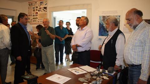 Τέλος, τα παιδιά ξεναγήθηκαν στις δυο αίθουσες του μουσείου. Στην «Αίθουσα Νάξου» ενημερώθηκαν για τη σμύριδα, την ιστορία εξόρυξής της και τα προϊόντα που παράγονται από αυτήν, για το μάρμαρο της Νάξου και τη χρήση του διαχρονικά και είδαν ευρήματα Παλαιολιθικών εργαλείων από πυριτιόλιθο, τα οποία εντοπίσθηκαν στη Στελίδα. Στην Αίθουσα «Το Αιγαίο και ο κόσμος» παρατήρησαν χάρτες που αποτυπώνουν τη μορφολογία και τη δομή του Αιγαίου Πελάγους, εντυπωσιακά δείγματα ορυκτών και πετρωμάτων, μεταλλεύματα κυρίως από ιστορικά μεταλλεία της Αττικής και των Κυκλάδων, ορυκτά και πετρώματα από 20 χώρες του κόσμου, ημιπολύτιμους λίθους, πολλά απολιθώματα μεταξύ των οποίων την γνάθο νάνου ελέφαντα, που έζησε στο νησί πριν από αρκετές δεκάδες χιλιάδες χρόνια κ.α.. Θα πρέπει να επισημανθεί ότι το ενδιαφέρον των μαθητών ήταν ιδιαίτερα ζωηρό τόσο για τα εκθέματα του μουσείου, αλλά και για το μικρό «εργαστήρι» που στήθηκε, προκειμένου να γνωρίσουν τις ιδιότητες των ορυκτών.