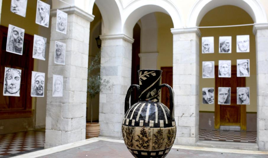 Οι φοιτητές του Εργαστηρίου Σχεδίου – Χρώματος εργάστηκαν πάνω στις ενότητες «αγγεία» (τρισδιάστατες κατασκευές), «μυθολογικά πλάσματα» (χαρακτική), «μυθολογικά και σύγχρονα τέρατα» (κινούμενο σχέδιο), «αρχαία αγάλματα» (ελεύθερο σχέδιο), «σύγχρονη μύηση στην αρχαία ελληνική τέχνη» (ψηφιακά τυπώματα), παράγοντας ελεύθερες δημιουργίες με διάφορες τεχνικές.