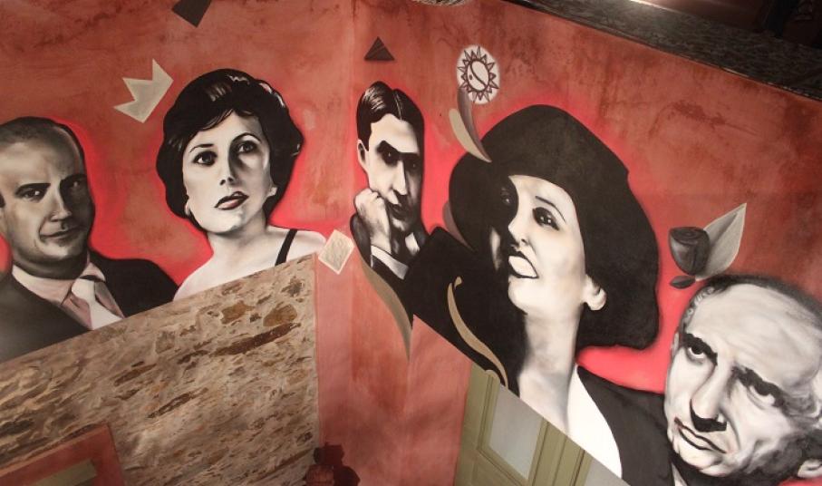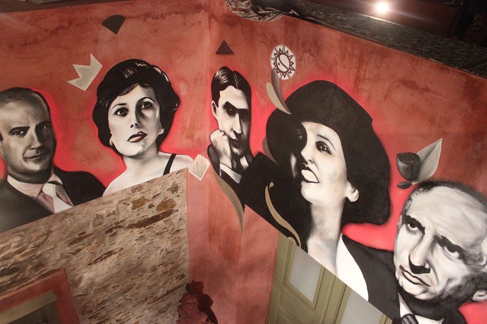 Έτσι, τέθηκαν τα θεμέλια για να δημιουργηθεί στην είσοδο του εκθεσιακού χώρου της Οικίας Κυβέλη μία καλαίσθητη τοιχογραφία, στην οποία απεικονίζεται η Κυβέλη και άλλα σημαντικά πρόσωπα του θεάτρου και της ιστορίας τόσο της Σύρου, όσο και της Ελλάδας γενικότερα, που συνδέονταν με την ίδια.
