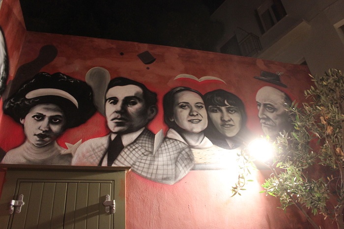 Η τοιχογραφία παρουσιάστηκε το βράδυ της Τετάρτης, στο πλαίσιο μίας μικρής μουσικής εκδήλωσης, που έλαβε χώρα στην ταράτσα της Οικίας Κυβέλη.