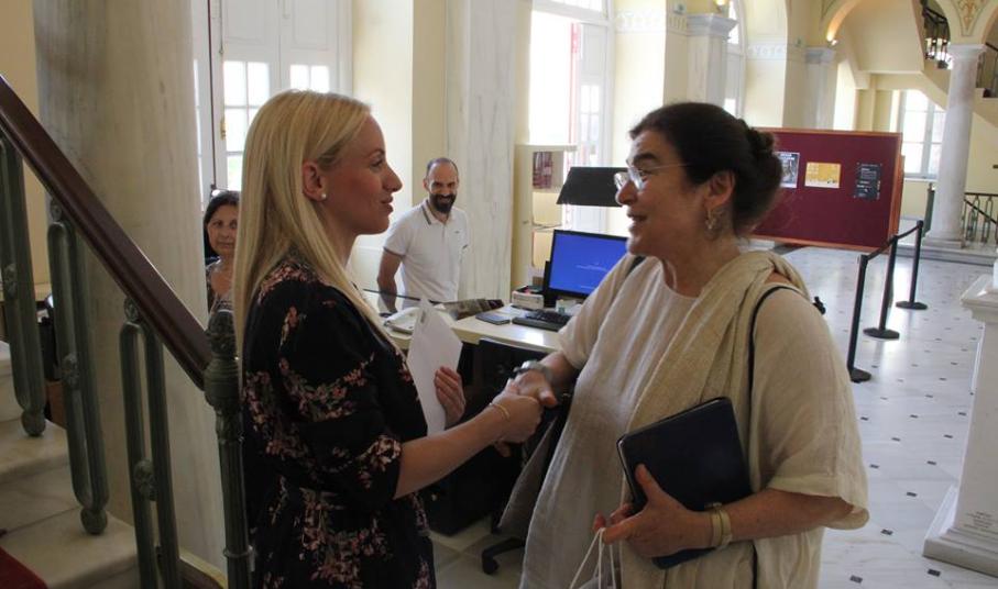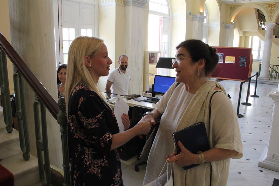 Στη συνάντηση που προηγήθηκε στο γραφείο του Δημάρχου Γιώργου Μαραγκού, παρουσία των Αντιδημάρχων Αλέξη Αθανασίου και Θωμαής Μενδρινού, του Γενικού Γραμματέα του Δήμου, Αλέξη Τσιάντη και του Διευθυντή του γραφείου της, Ευάγγελου Πολίτη Στεργίου, η κ. Κονιόρδου απέδωσε εύσημα στο έμψυχο δυναμικό της Σύρου για τις σημαντικές προσπάθειες διατήρησης και προβολής της πολιτιστικής ταυτότητάς της.
